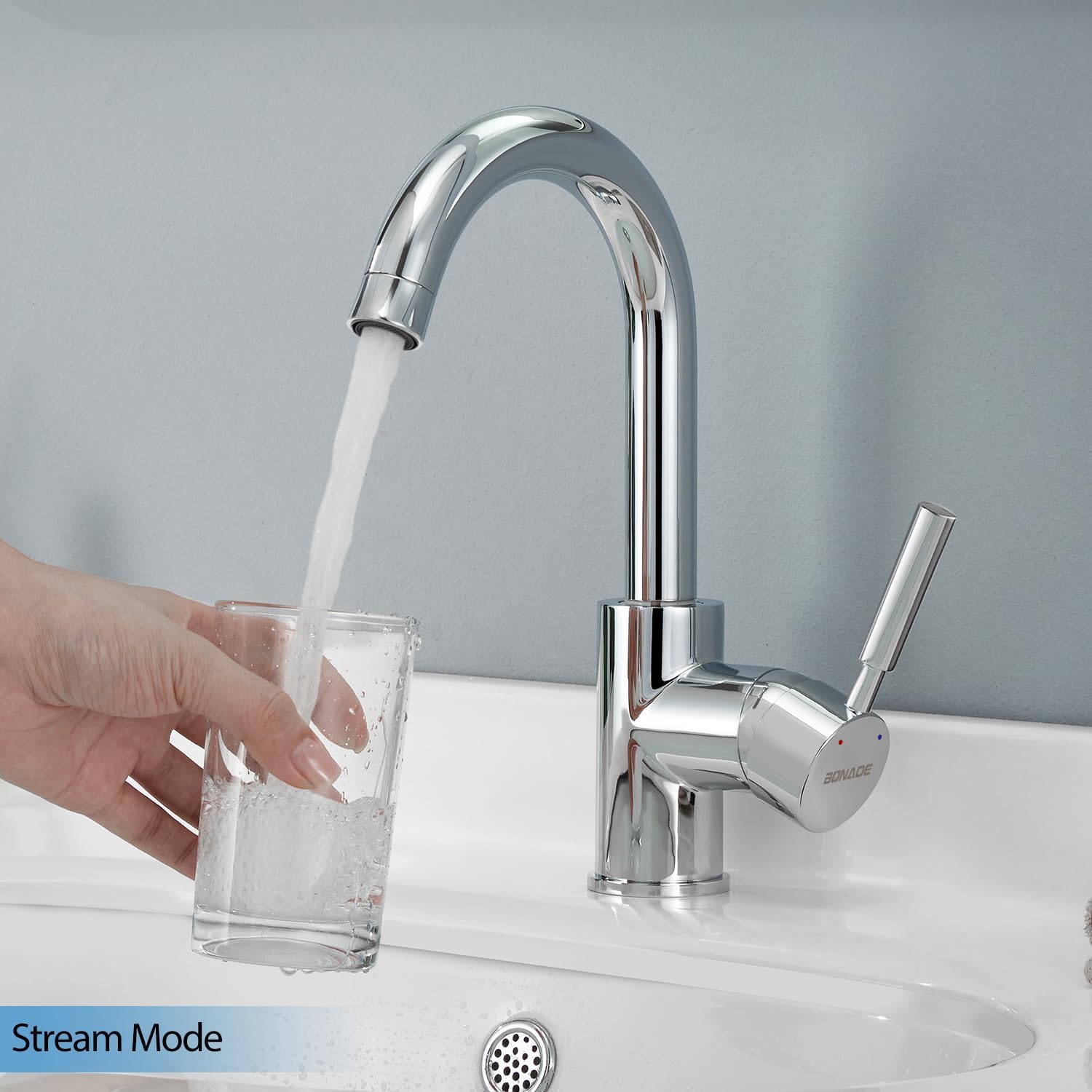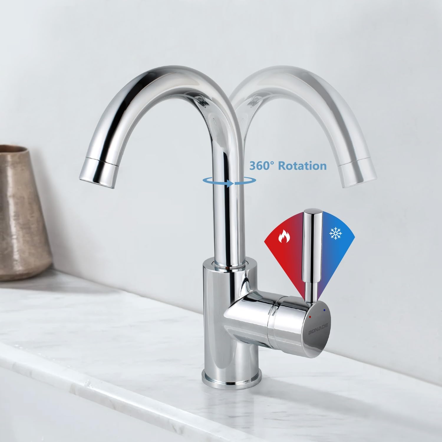 BONADE Waschtischarmatur, Wasserhahn Bad Armatur 360° Drehbar, Waschbecken Armaturen Messing Chrom,