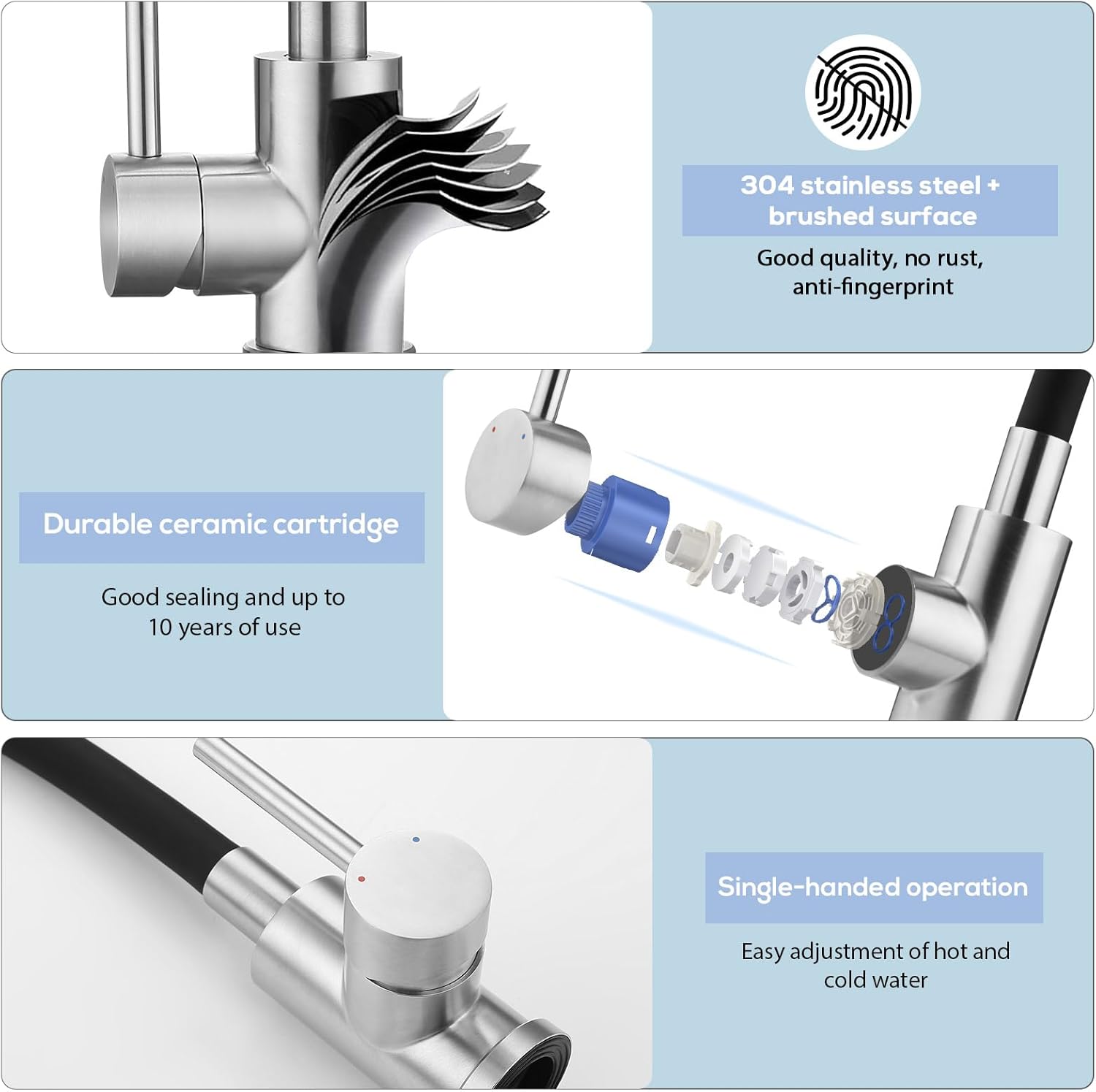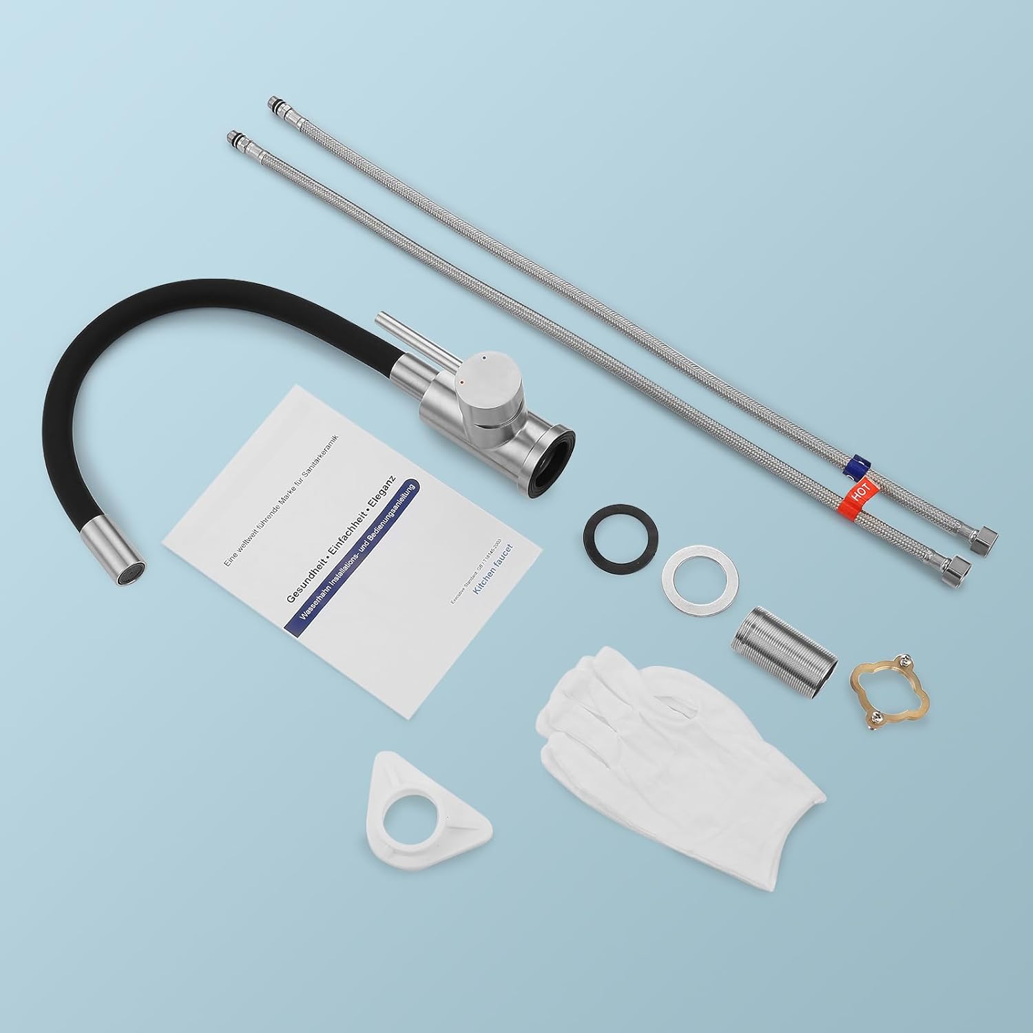 - 【KTW- und DVGW-Zertifizierung】Die Spülarmaturen Küche besteht aus einem sicheren Aussenschlauch aus lebensmittelechtem Silikon und einem Innenschlauch aus Edelstahl. Der 60 cm lange Schlauch ist nach dem KTW-Standard geprüft und entspricht den