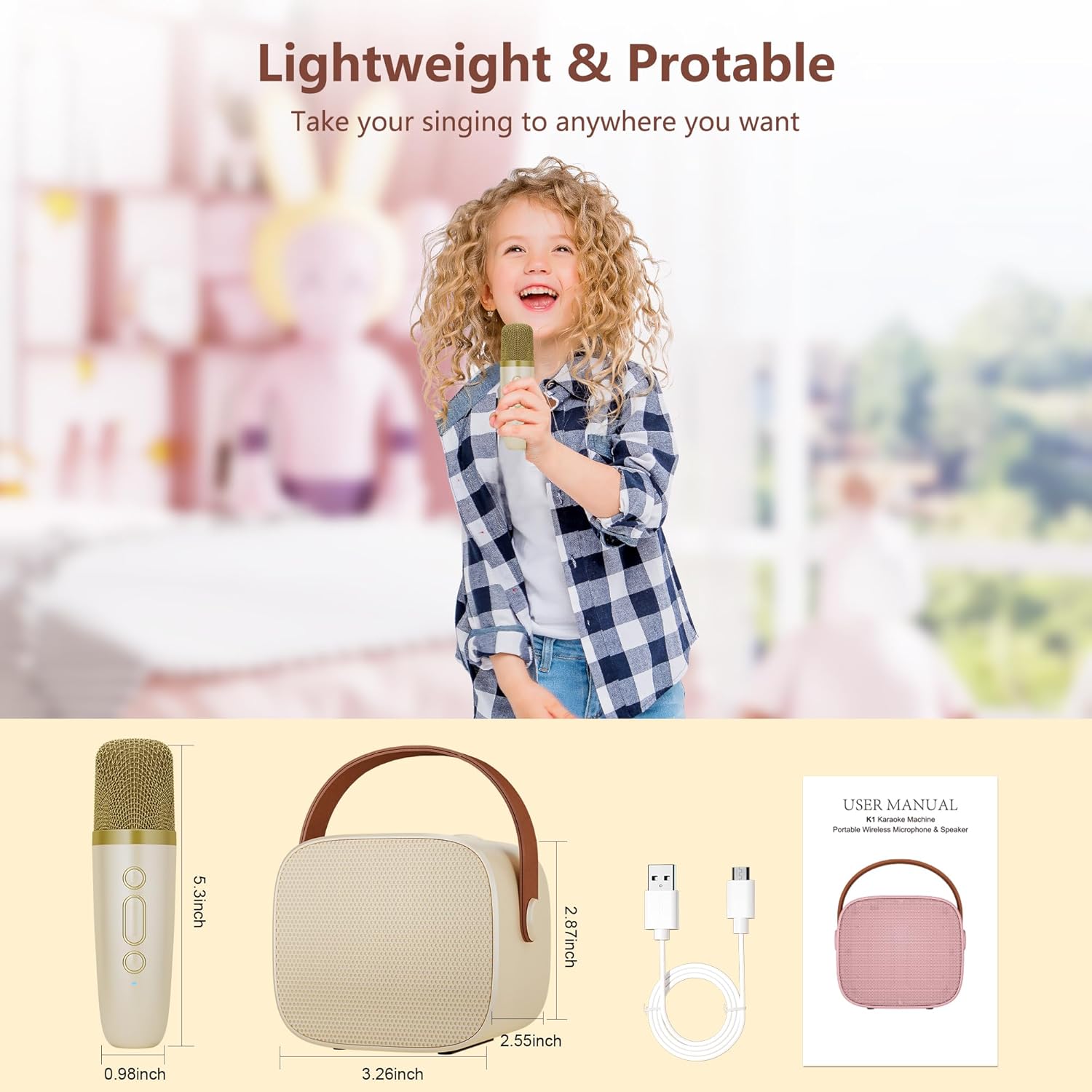 - 【Tragbare Mini-Karaokemaschine】Dieses Karaoke-Set ist sehr klein und leicht, so dass ein kleines Kind es ohne Probleme tragen kann. Die Karaoke-Maschine ist auch sehr handlich, so dass es leicht mit Ihnen zu nehmen und einfach zu speichern. Perfekt