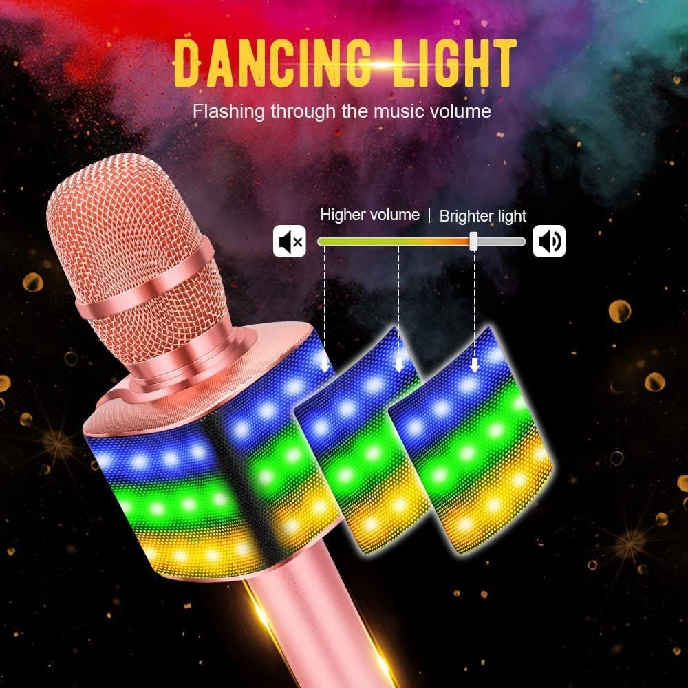 - 【Mehrfarbiges Tanzlicht】 - Angepasst für Party-, Indoor- / Outdoor-Aktivitäten und Interviews. Auf dem Karaoke-Mikrofon blinken viele LED-Lichter durch die Lautstärke, wodurch eine wärmere Atmosphäre entsteht.