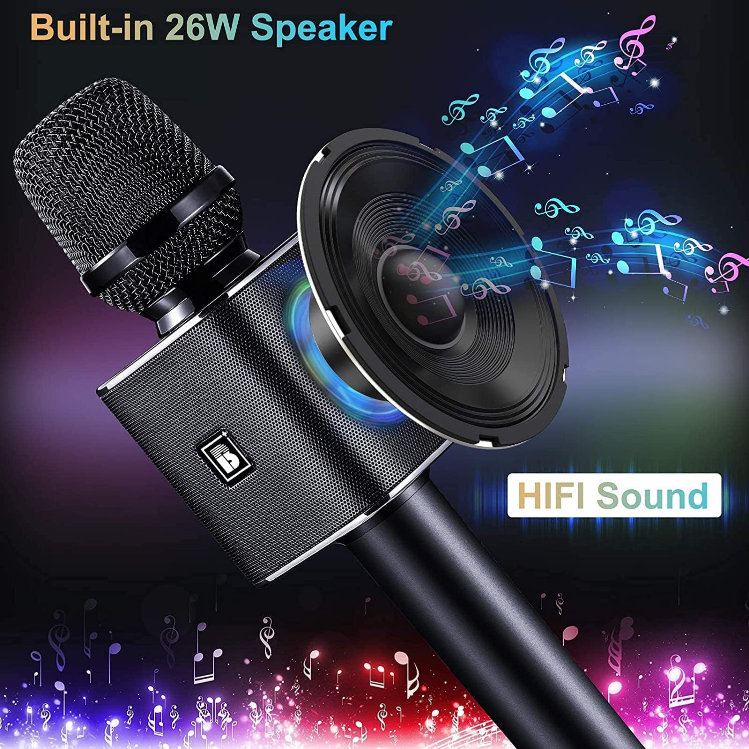 - 【Multifunktions-Karaoke-Mikrofon】 Als Handmikrofon, Stereo-Bluetooth-Lautsprecher, tragbare Karaoke-Maschine, Rekorder, Automikrofon, Duett-Singen, auch in der Lage, Gesang aus Musik zu entfernen / wiederherzustellen.