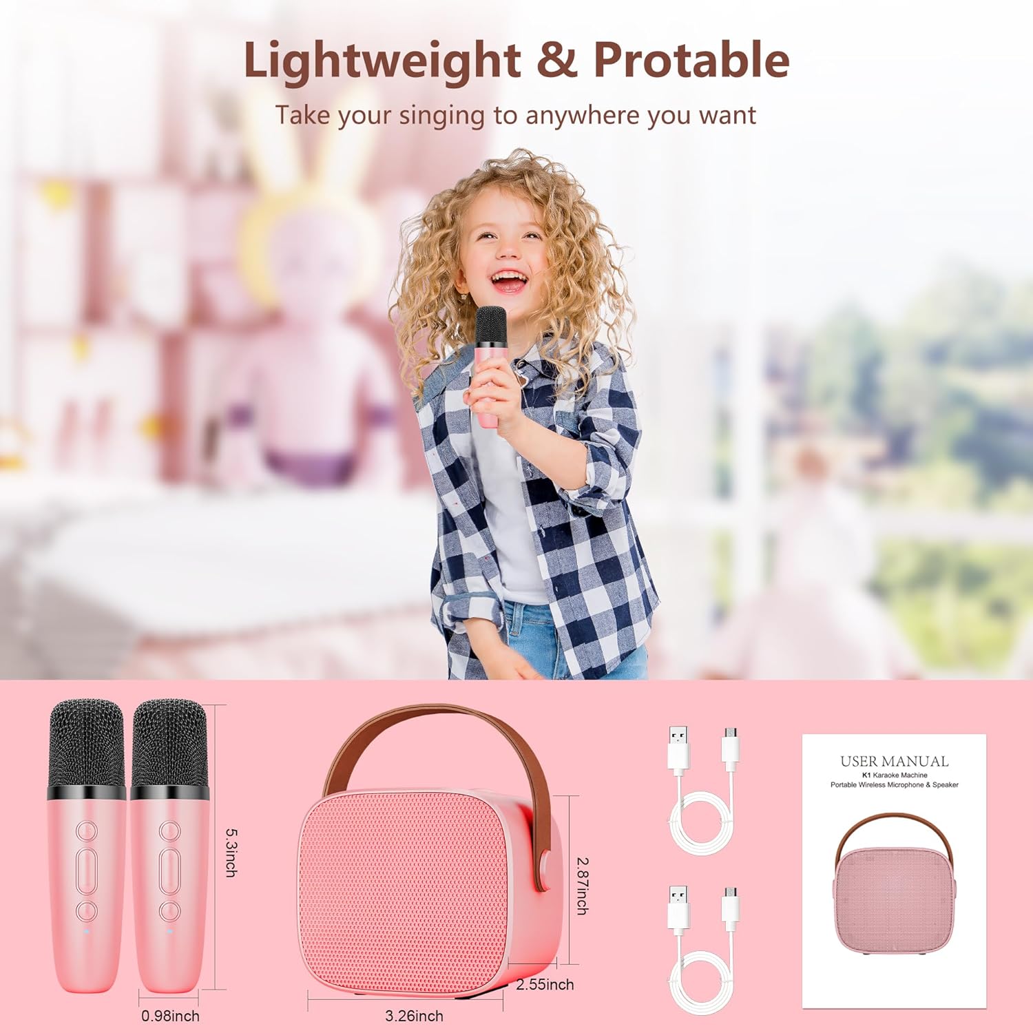 • 【Tragbare Mini-Karaokemaschine】Dieses Karaoke-Set ist sehr klein und leicht, so dass ein kleines Kind es ohne Probleme tragen kann. Die Karaoke-Maschine ist auch sehr handlich, so dass es leicht mit Ihnen zu nehmen und einfach zu speichern. Perfekt