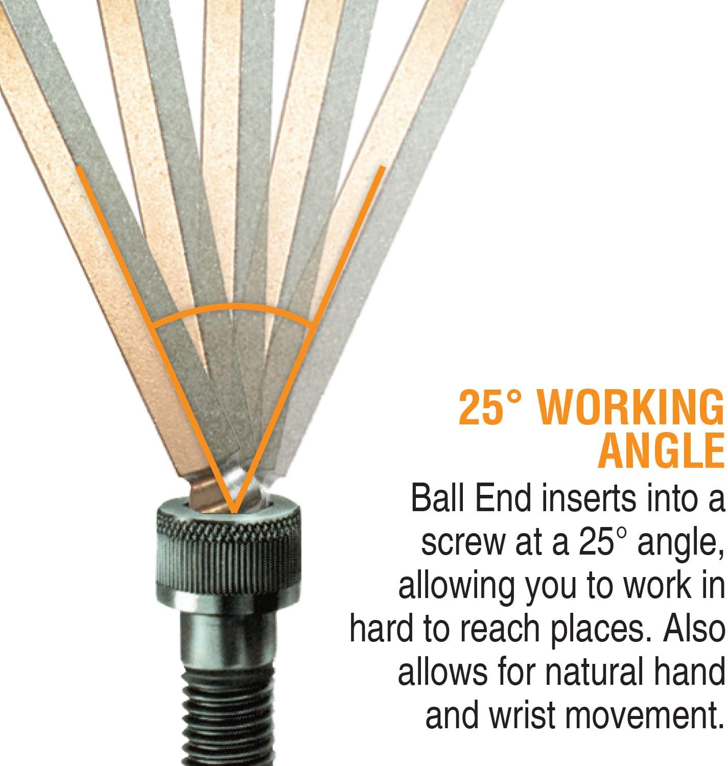 • Lange Seite mit Kugel facettenreich ermöglicht die Arbeit mit Anzeige von bis zu 25 ° Winkel; kurze Seite mit gerade Enden Standard