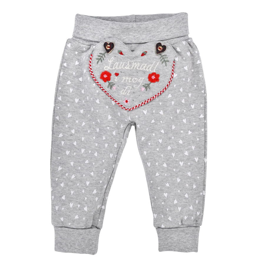 - Die komfortable Laufhose für Baby-Mädchen "Lausmadl I mog di" im Trachtenstil.