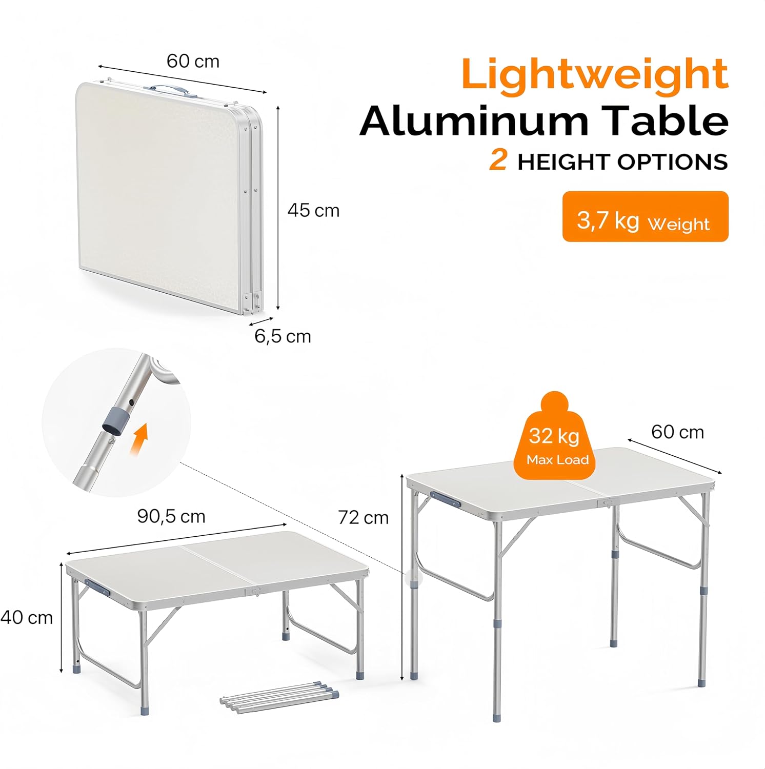 - 【Höhenverstellbarer Tisch für verschiedene Anwendungen】Dieser Outdoor Tisch lässt sich auf 2 verschiedene Höhen einstellen und eignet sich perfekt als Camping Tisch, Picknicktisch, Gartentisch oder kleiner Esstisch für Balkon und Terrasse.