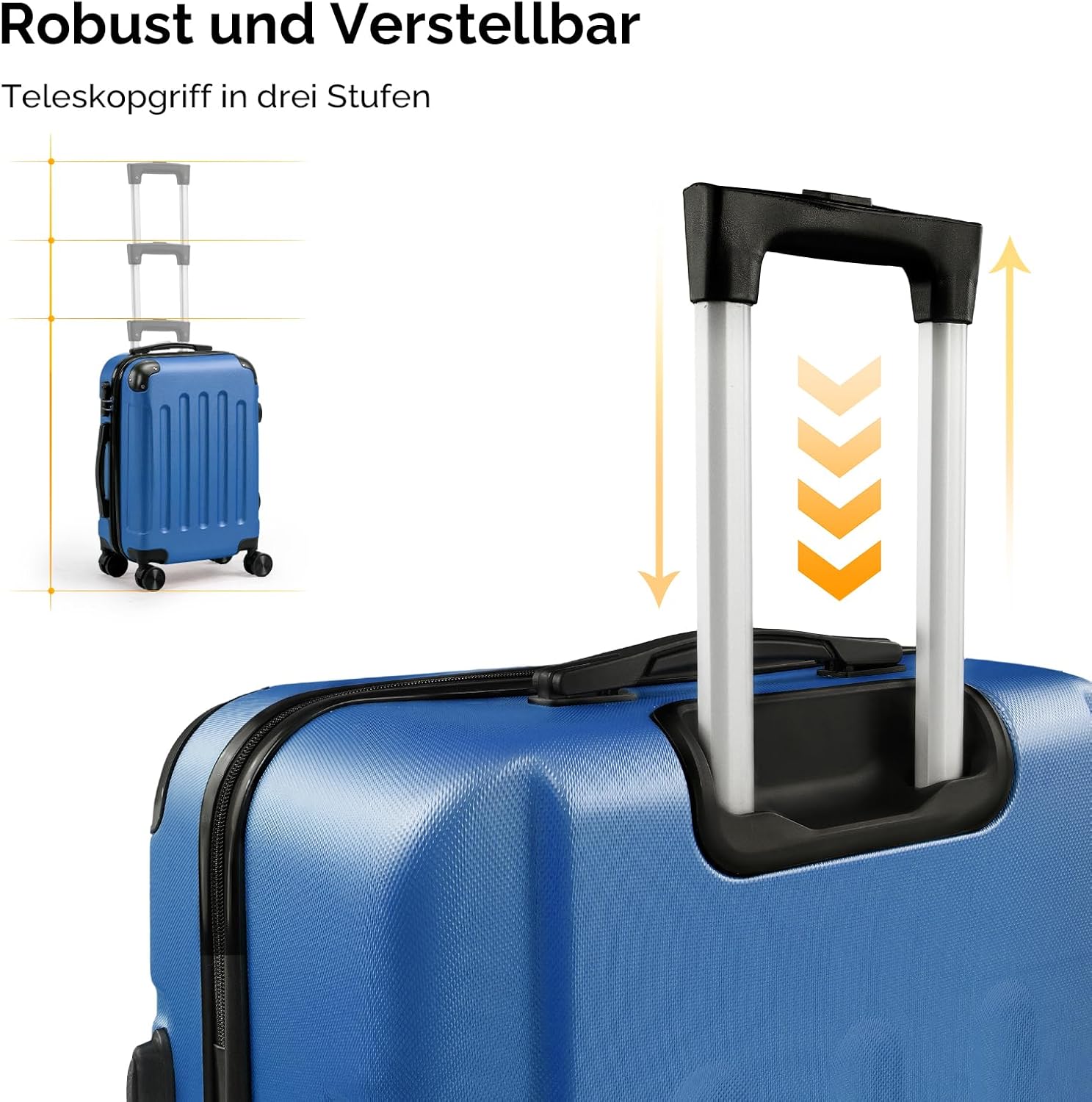 - BEQUEM & SICHER: Mit 4 leichtgängigen 360° Rollen und in drei Höhen verstellbarem Teleskopgriff können Sie diese Hartschalen-Koffer angenehm schieben. Zur Sicherheit während Ihrer Reise ist der Koffer mit einem dreistelligen Zahlenschloss