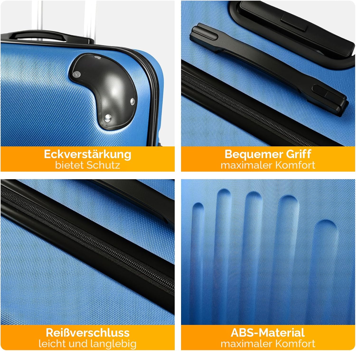 - ROBUST & LEICHT: Besteht aus ABS-Material lassen sich unser Gepäck-Set stossfest, schlagfest sowie kratzfest. Zudem verleiht das leichte dennoch robuste Material den Koffern während des Gebrauchs hohe Stabilität und ist auch schmutzabweisend sowie