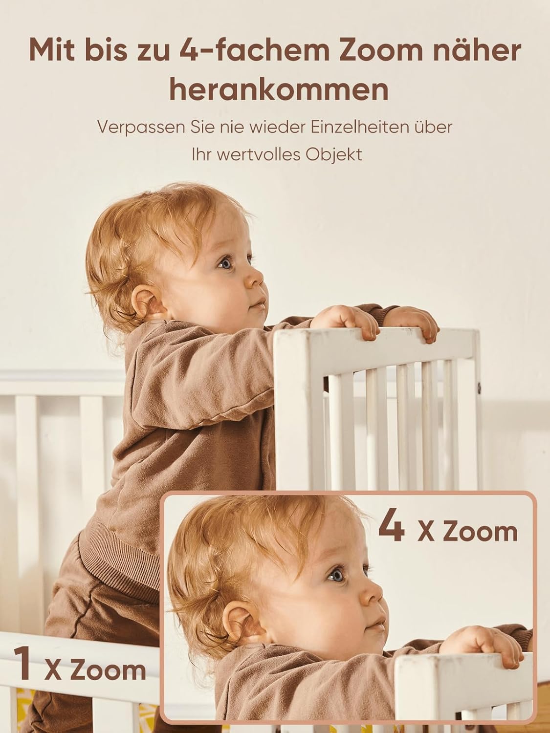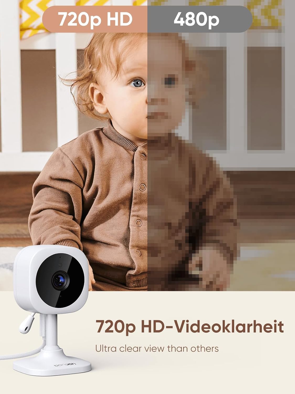- 【720p klare Sicht, Seelenfrieden】 Die 720p HD-Video- und Zoomfunktionen des Babyphones mit kamera von Bonoch lassen Sie die gestochen scharfen Details sehen. Sowohl die Kamera als auch der Bildschirm sind echte 720p, mit dem 2-, 3- und 4-fachen