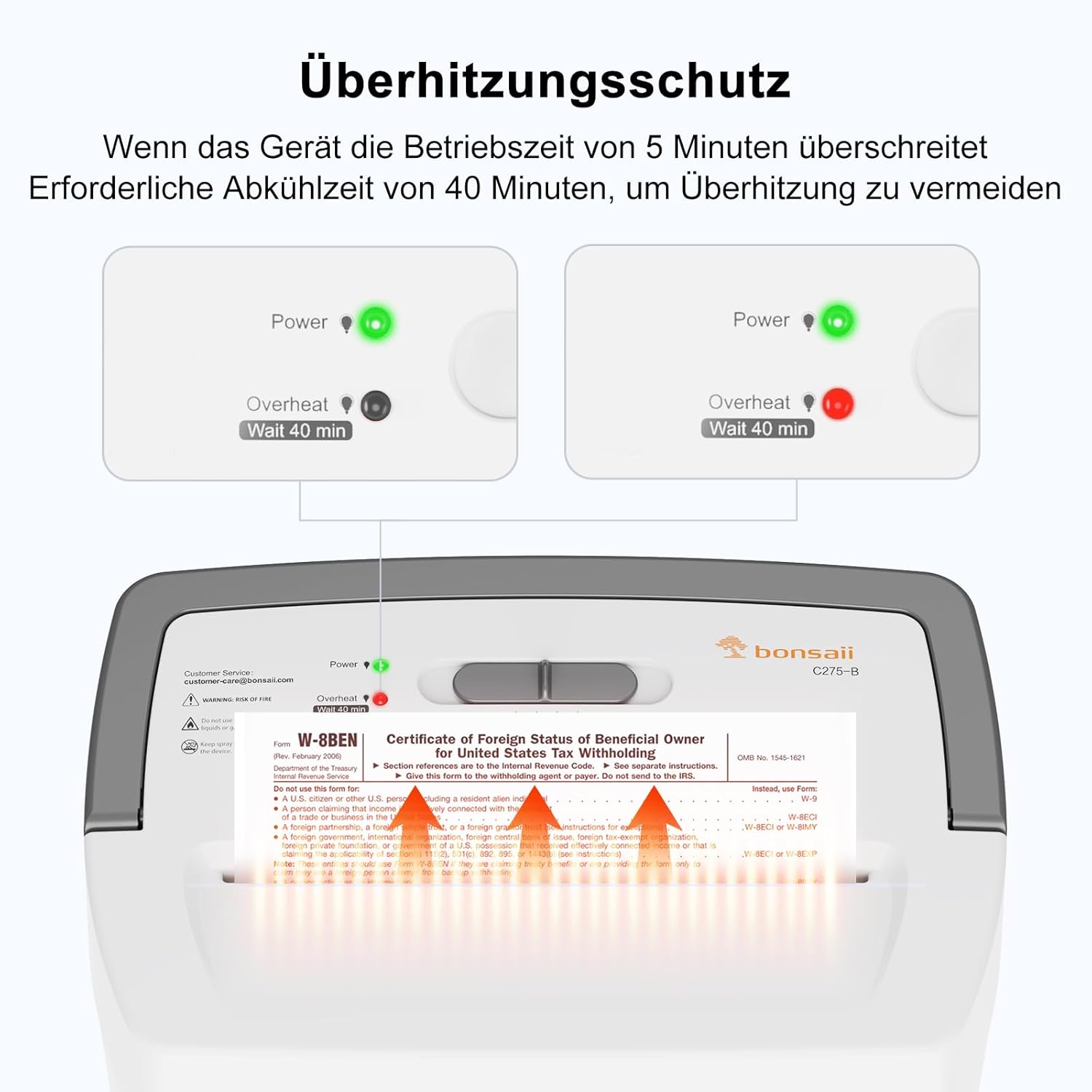 - Effizient und leise: Der papierschredder Aktenvernichter kann bis zu 5 Minuten lang ununterbrochen arbeiten und spart Ihnen so Zeit bei der Arbeit. Bonsaii Aktenvernichter sind leise und zuverlässig und ermöglichen einen Betrieb, der Kollegen oder