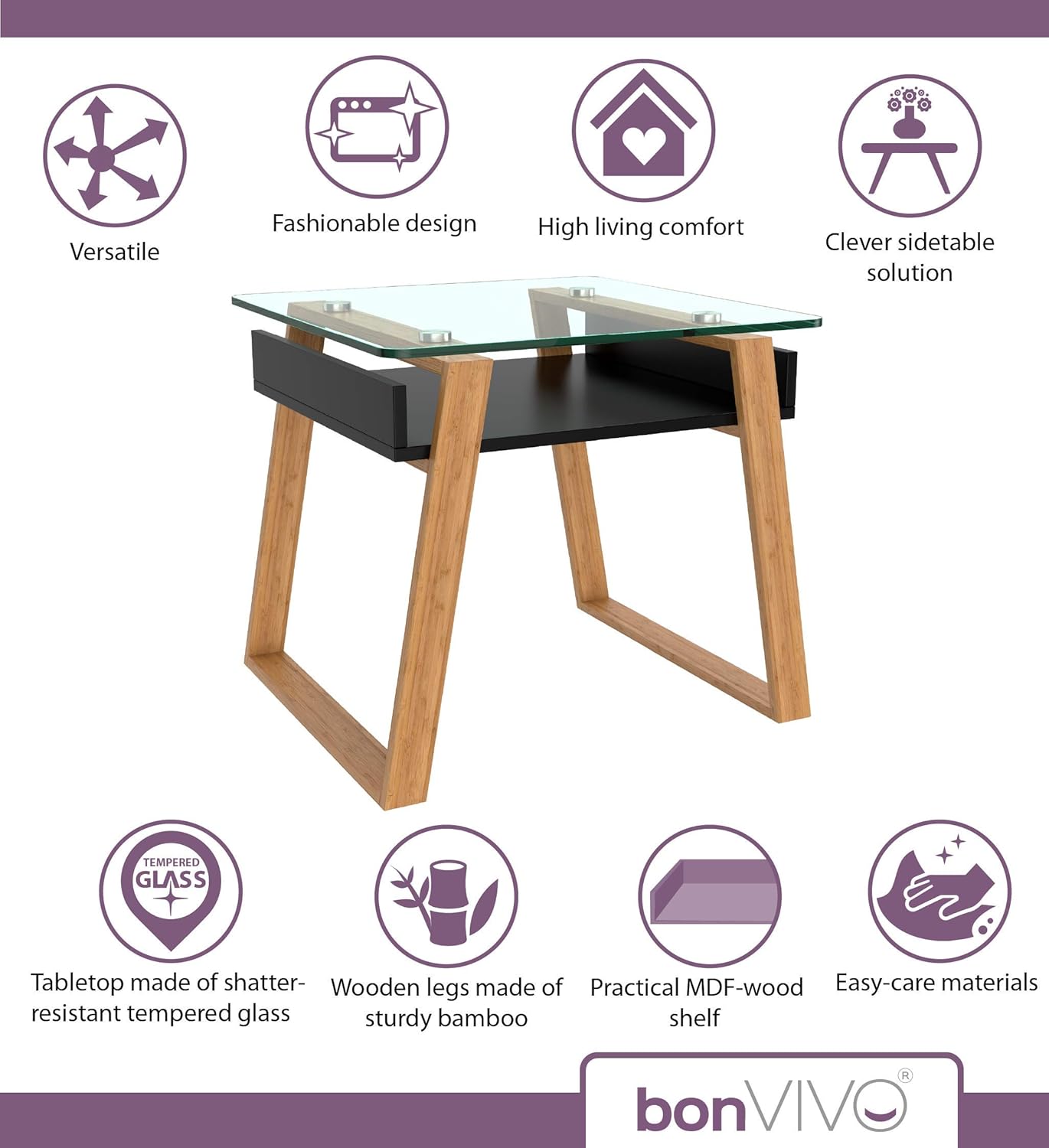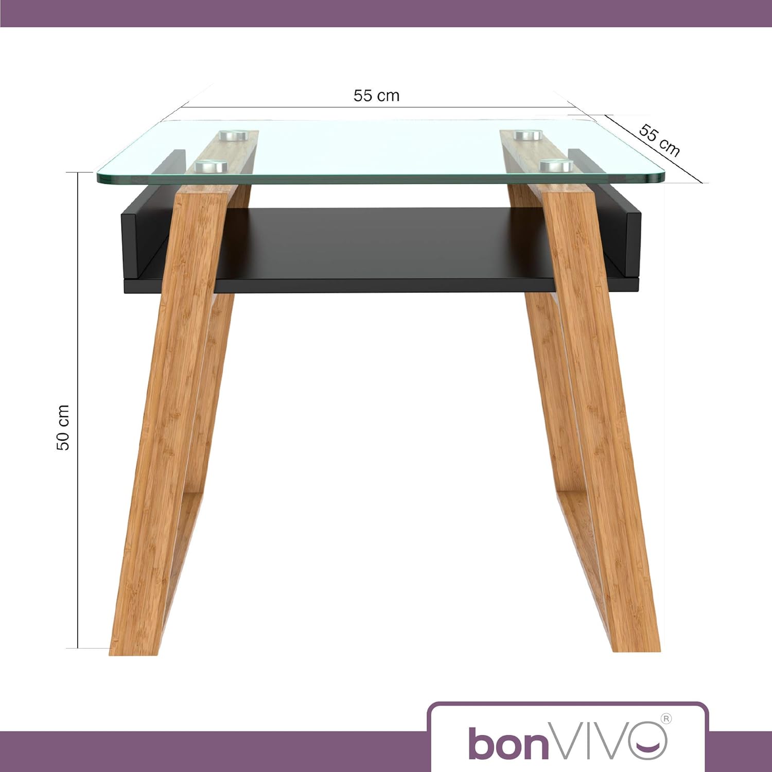 - STABILE KONSTRUKTION - Der Coffee Table besteht aus einer widerstandsfähigen Tischplatte aus dickem Sicherheitsglas mit robusten Bambus-Beinen, die selbst auf Teppich wackelfrei und rutschsicher stehen.
