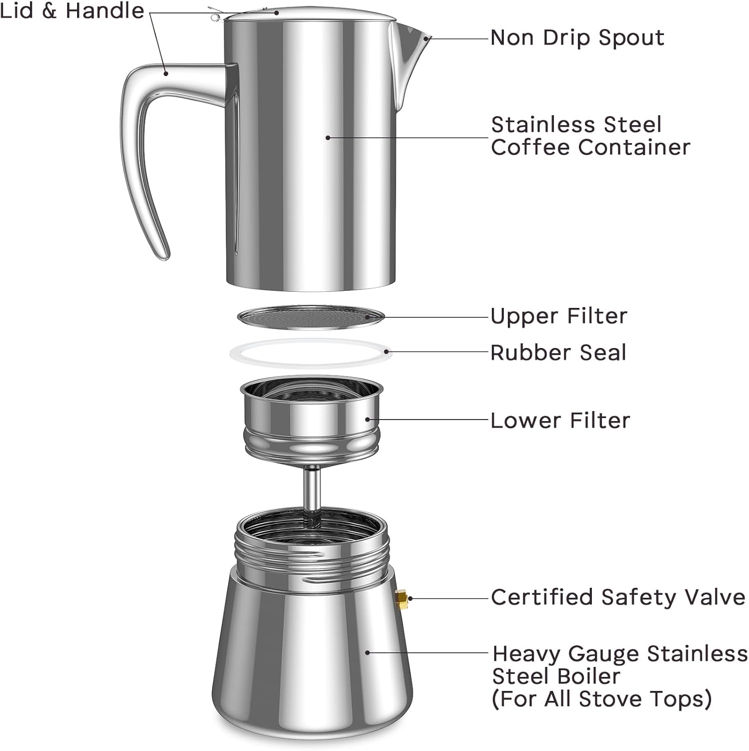 - EDLES DESIGN: Mit dem Mokkakocher aus Edelstahl im Silber Look wird jeder zum Barista!