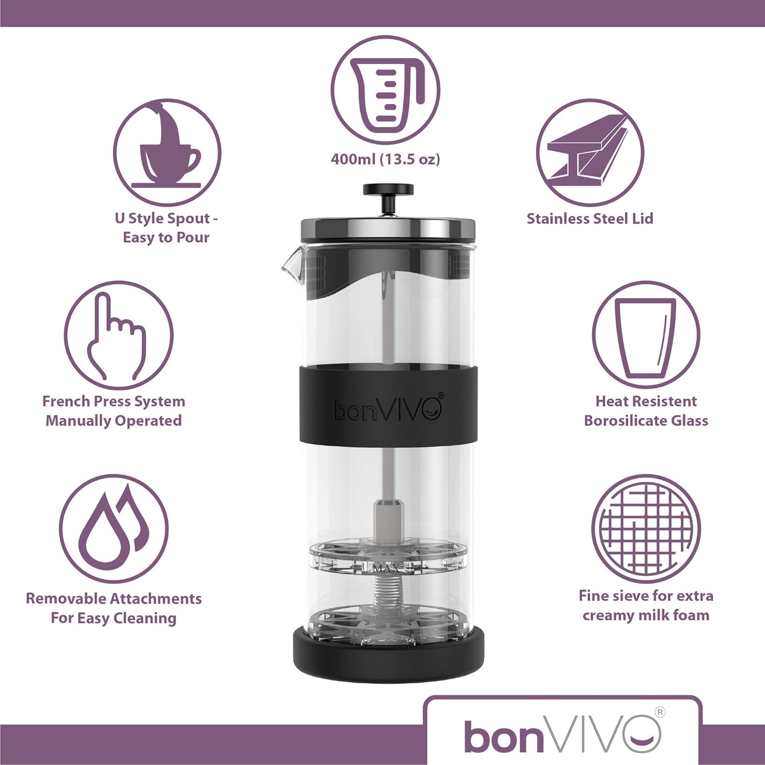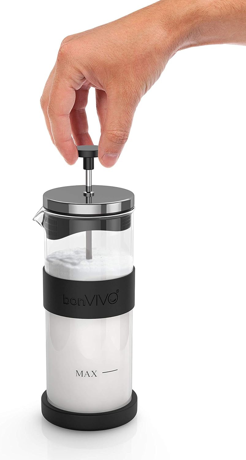 bonVIVO FOMO, Milchaufschäumer Manuell Betrieben, Milchaufschäumer Glas Und Edelstahl, Hand Milchsch