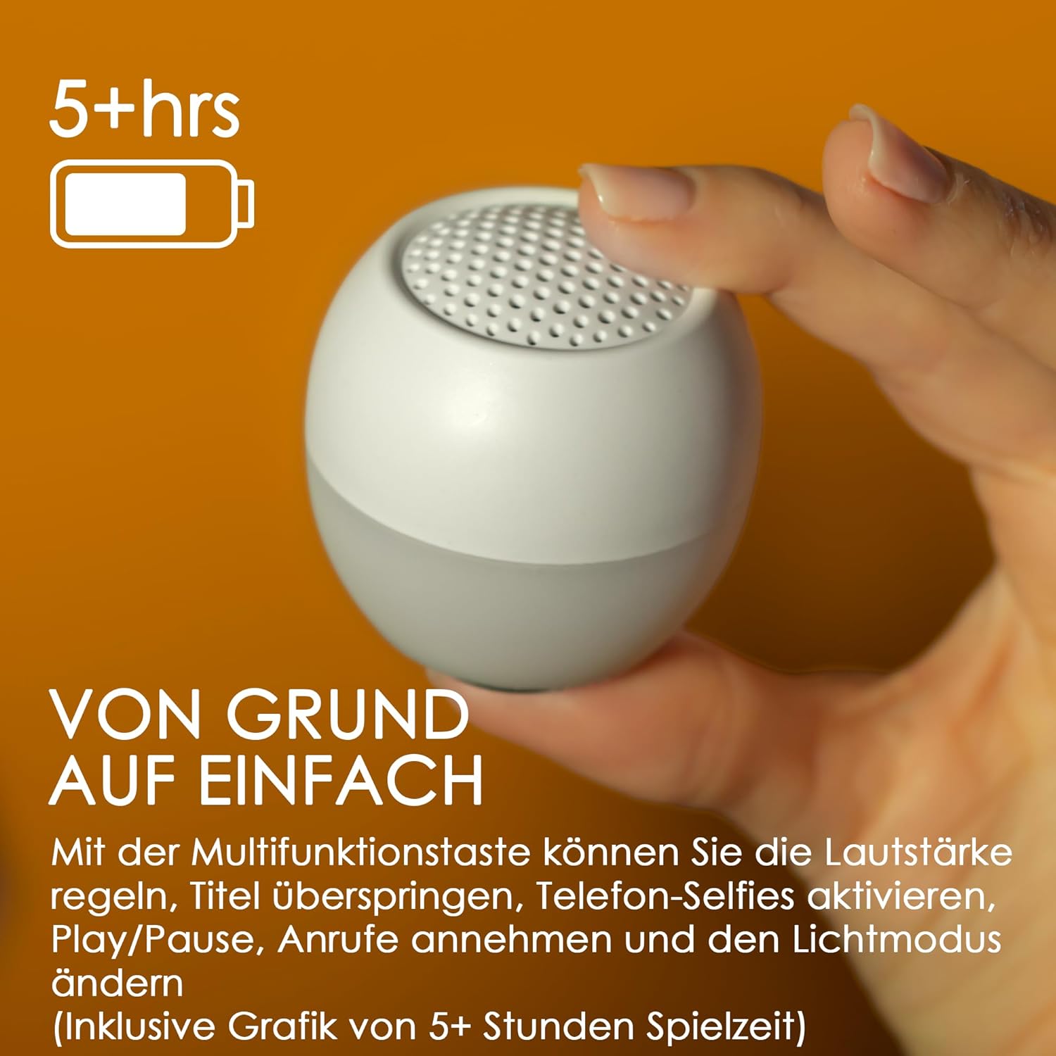 - SELFIE-FUNKTION: Mit der integrierten Selfie-Taste des tragbaren Bluetooth-Lautsprechers können Sie ganz praktisch Selfies machen. Einfach die Zero-Taste auf unserer Bluetooth Box drücken und sich in Pose werfen - ideal für Partys