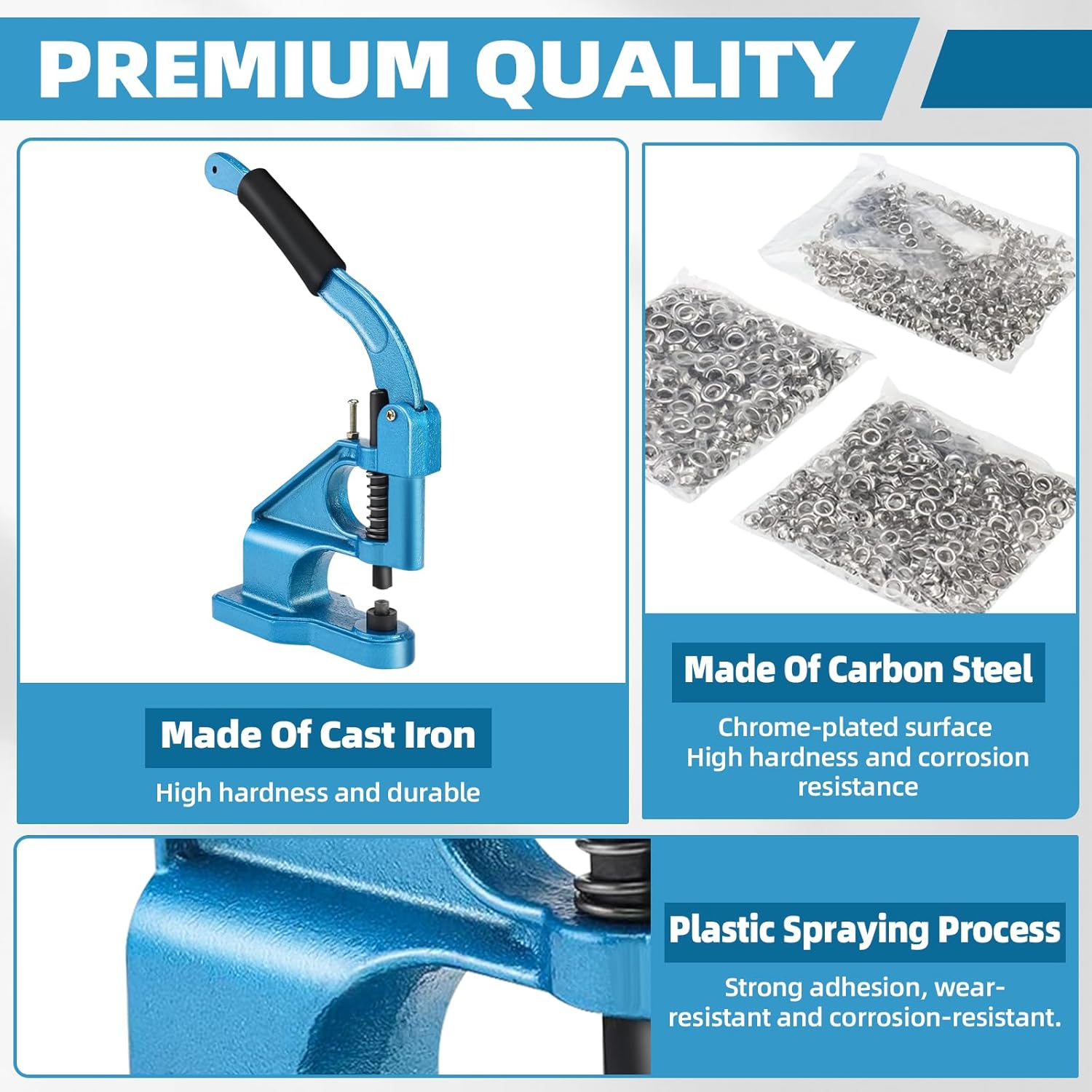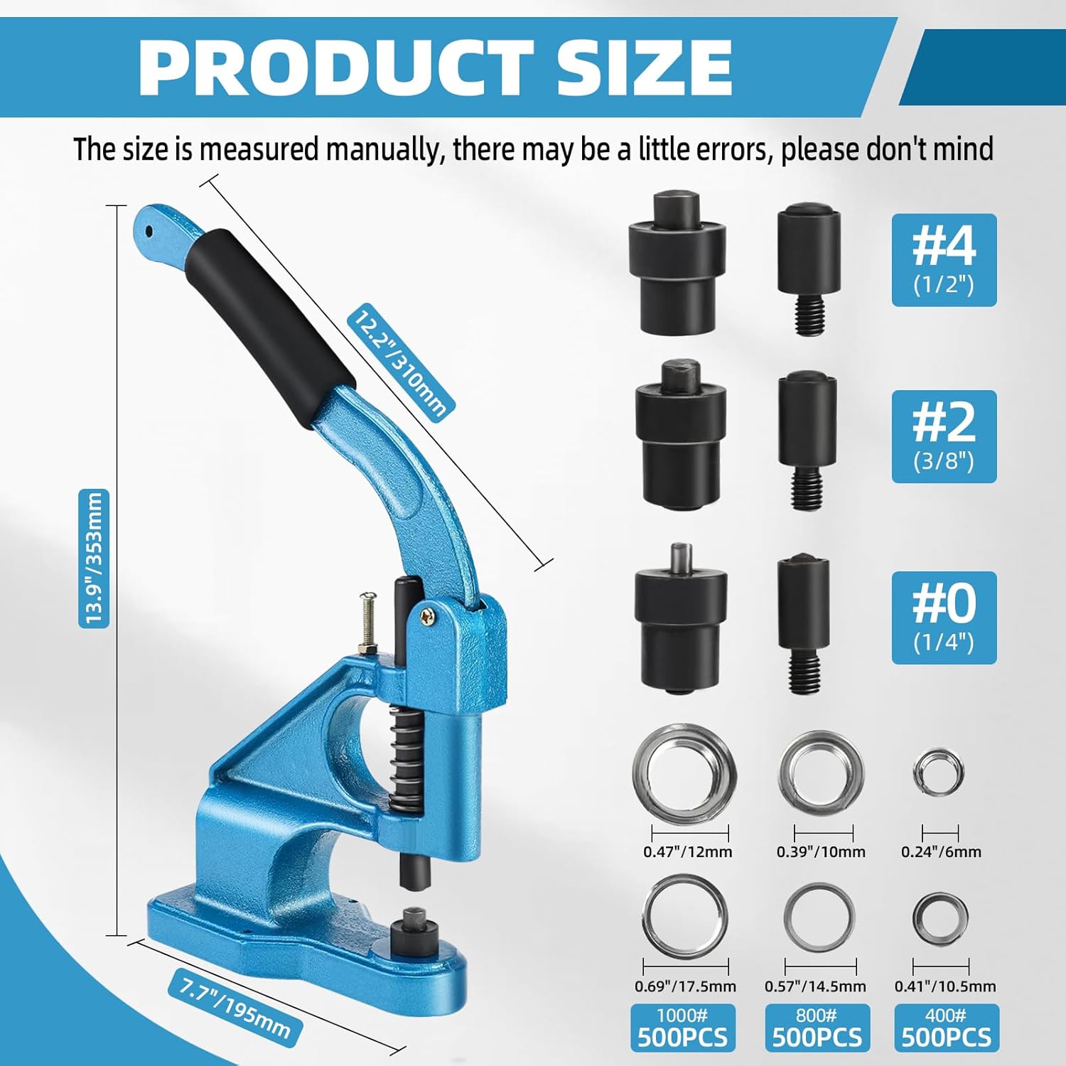 - 【Komplettes Zubehör】 Dieses Nietzange Maschine Kit enthält eine handgepresste kreisförmige Perforationsmaschine, #0: 1/4" (6mm), #2: 3/8' (10mm) und #4: 1/2" (12mm) Matrize und 1500 Ösen in 6 mm, 10 mm und 12 mm, 500 Stück für jede Grösse.um Ihre unterschiedlichen Bedürfnisse zu erfüllen..Sie können nicht nur eine Handpresse Ösenzange bekommen, Sie müssen sie nicht separat kaufen und sie kann mit einer grossen Anzahl von Tüllenlöchern für lange Zeit verwendet werden.