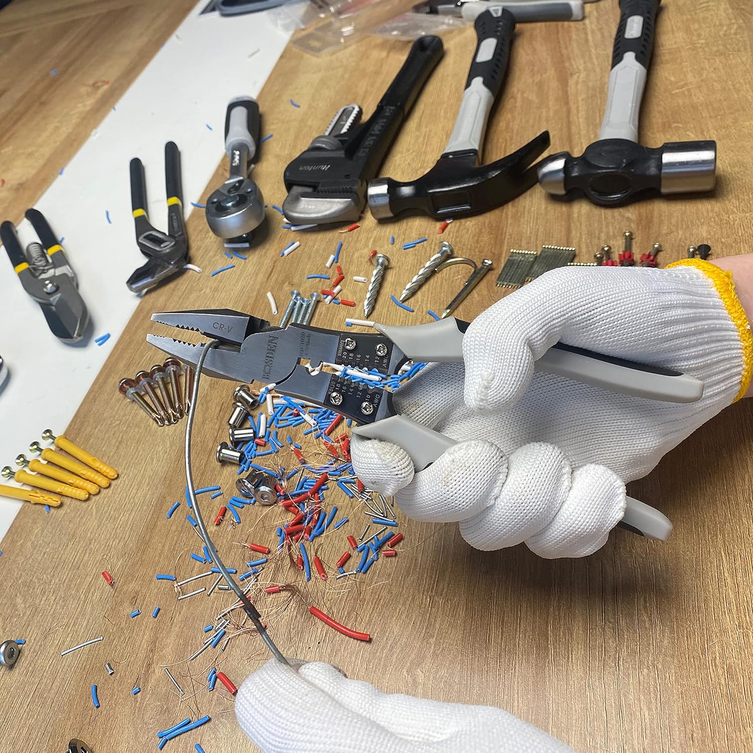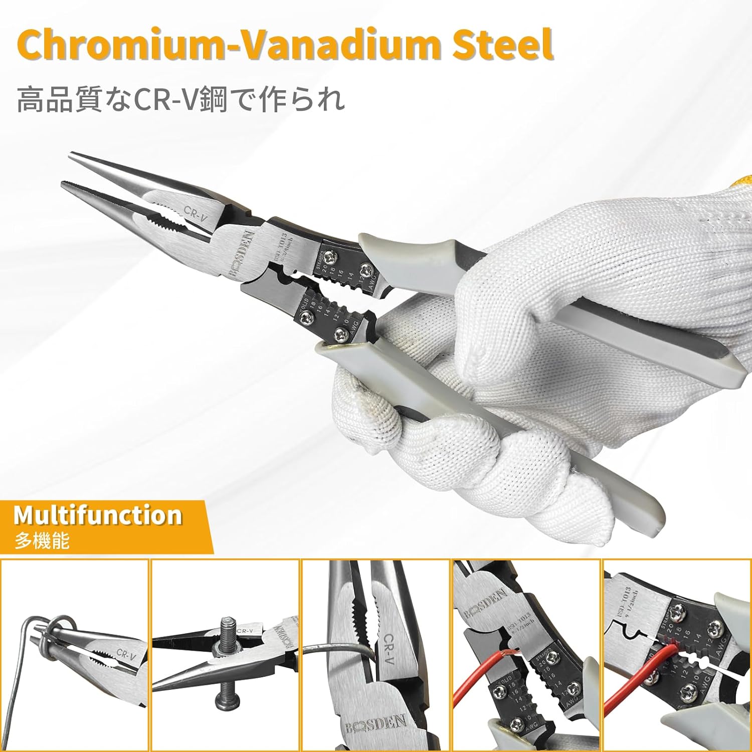 - 【Spitzbengzange】Die 9 Zoll lange Spitzbengzange verfügt über Seitenschneider, Drahtabstreifer, Presswerkzeug und Kneifwerkzeug und Vielseitige Industriekombizange haben tragbare Gürteltasche.