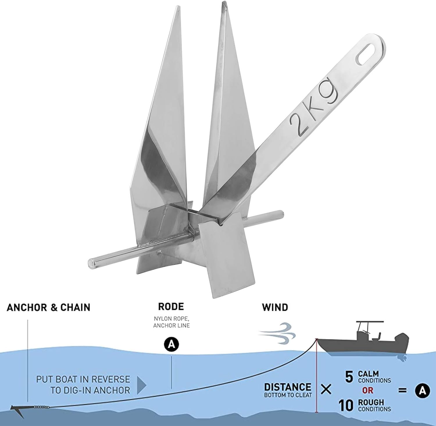 Bootsanker, Yosoo 4lbs/2kg Bootsanker für Boote 17 Bis 22 Fuss Edelstahl Marine Hardware Teile Zubeh