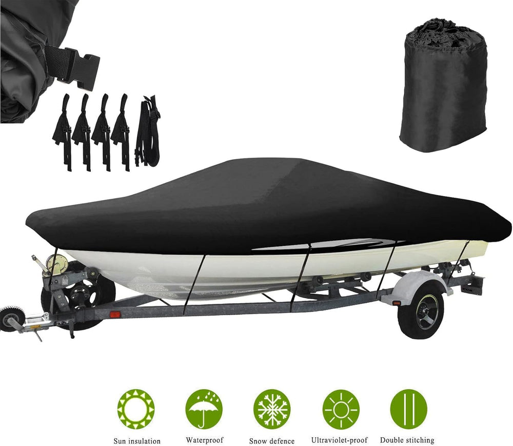 • Material: Bootsabdeckung Hergestellt aus starkem und haltbarem 210/420D Polyester Oxford mit PU-Beschichtung, bietet mehr Haltbarkeit und Wasserbeständigkeit.Es ist ein bester und effektiver Schutz gegen Staub, Schmutz, UV-Strahlen, Schnee, Regen,