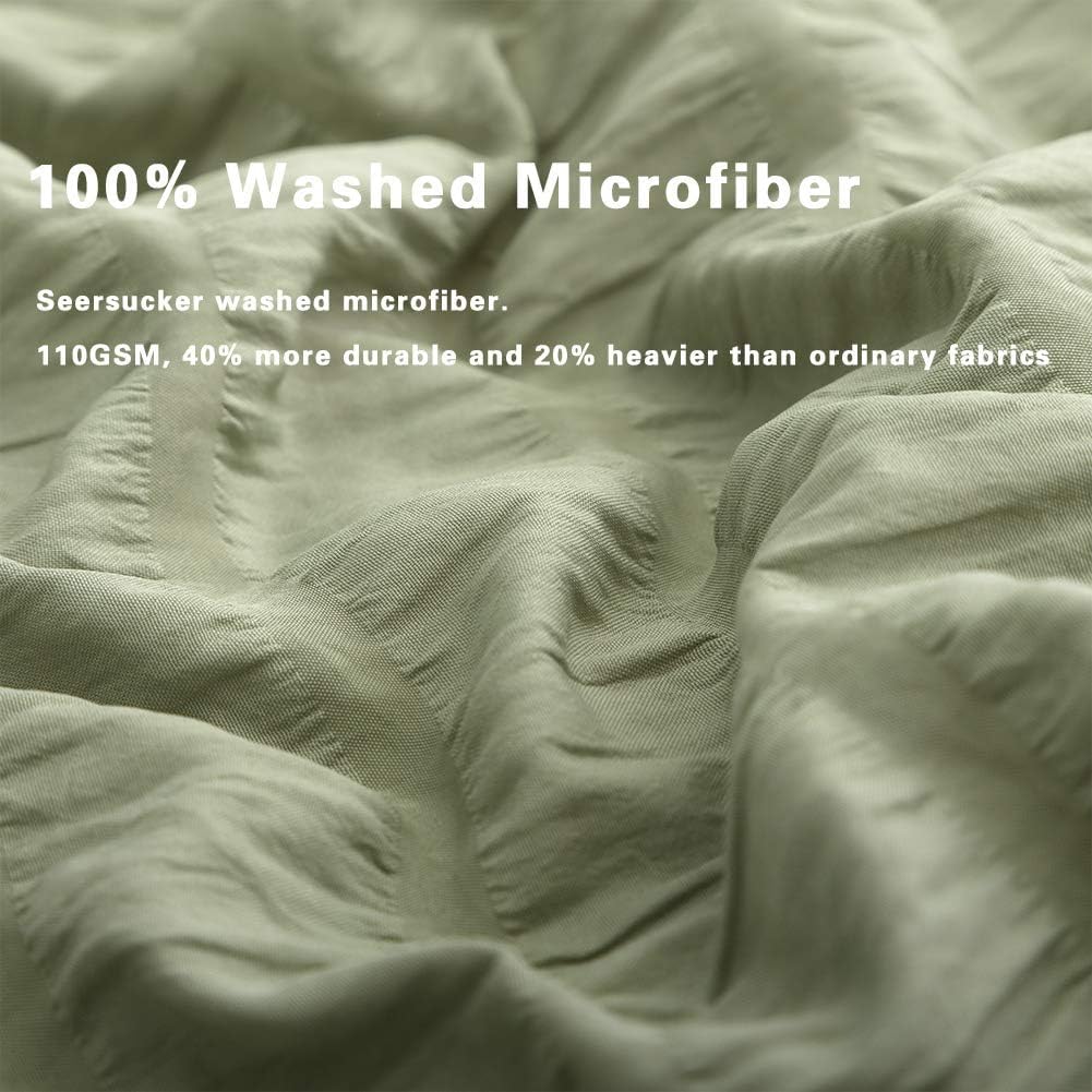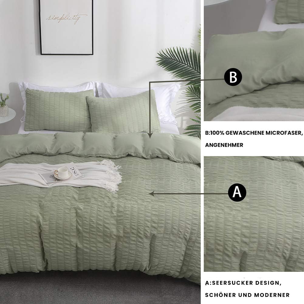 Boqingzhu Seersucker Bettwäsche Grün 220x240cm Sommer Atmungsaktiv Kühlende Wende Bettwäsche Set Bet