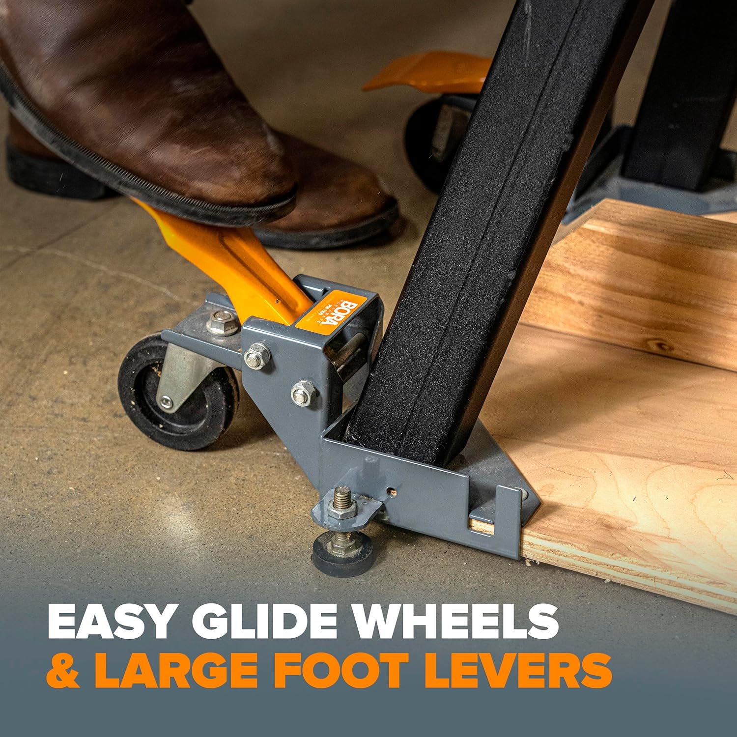 • Easy Glide + Feststellhebel: Die einfach zu bedienenden, fussbetätigten Verriegelungshebel verriegeln die 7,6 cm grossen Hartplastikrollen an Ort und Stelle. Dieses Set ist perfekt für Garagen, Holzläden, Werkstätten oder überall dort, wo Sie Ihre