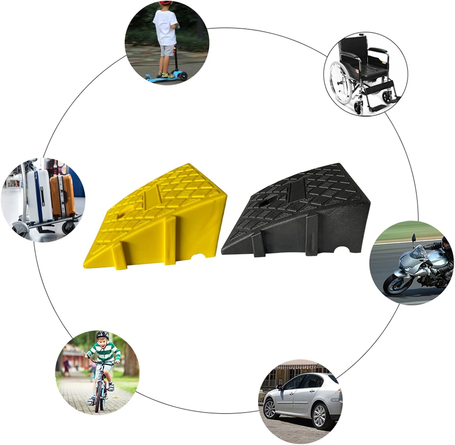 • ❤【Breite Anwendungen】 - Auffahrtsrampen können verwendet werden, um Schwellen für Rollstühle, Golfwagen, Motorräder, Boote, Aufzüge, Einkaufswagen, Fahrräder und Roller, Hausgaragen und mehr zu erhöhen. Bordsteinrampen können Ihnen das