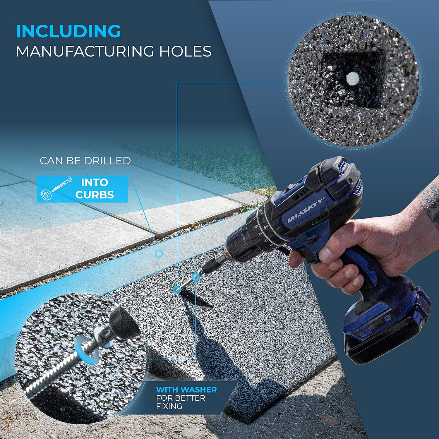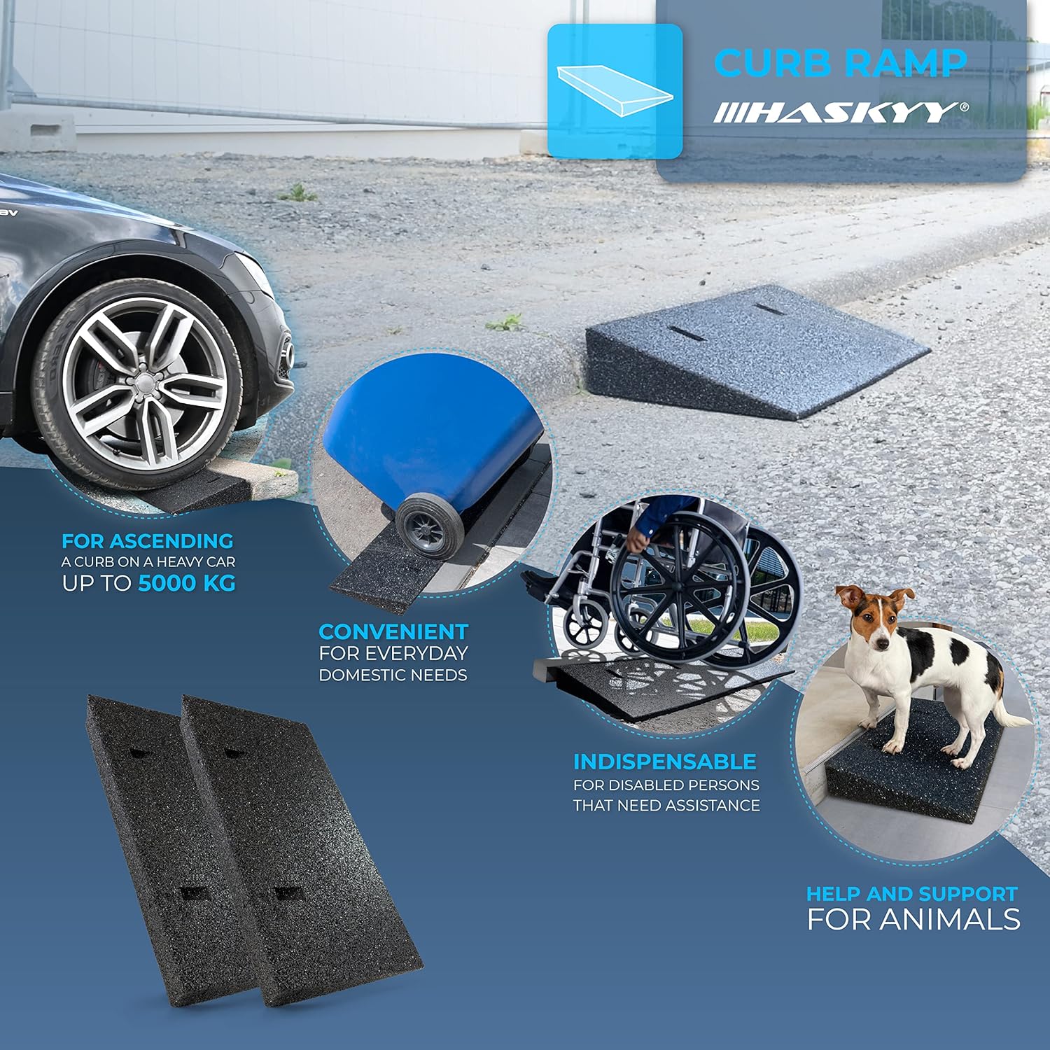 - 𝗘𝗫𝗭𝗘𝗟𝗟𝗘𝗡𝗧𝗘 𝗩𝗘𝗥𝗔𝗥𝗕𝗘𝗜𝗧𝗨𝗡𝗚 - Bordstein-Auffahr-Rampe aus 100% recyclebarem Gummigranulat. Hoch belastbar: Max. 5 t / pro Reifen