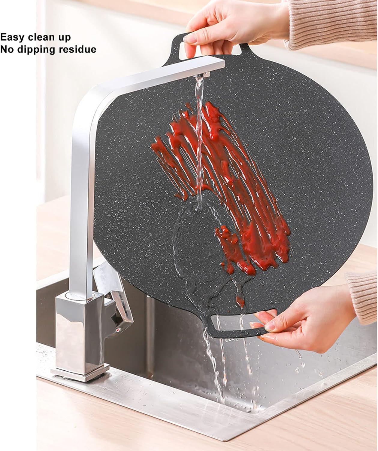 - GEBOGENES DESIGN: Die BBQ-Grillpfanne hat ein gebogenes Design, die Pfanne ist leicht geneigt und kann zum Auffangen von Öl verwendet werden. Es kann zum Braten, Schmoren und für andere Kochmethoden verwendet werden und bietet gesunde Kochmethoden.
