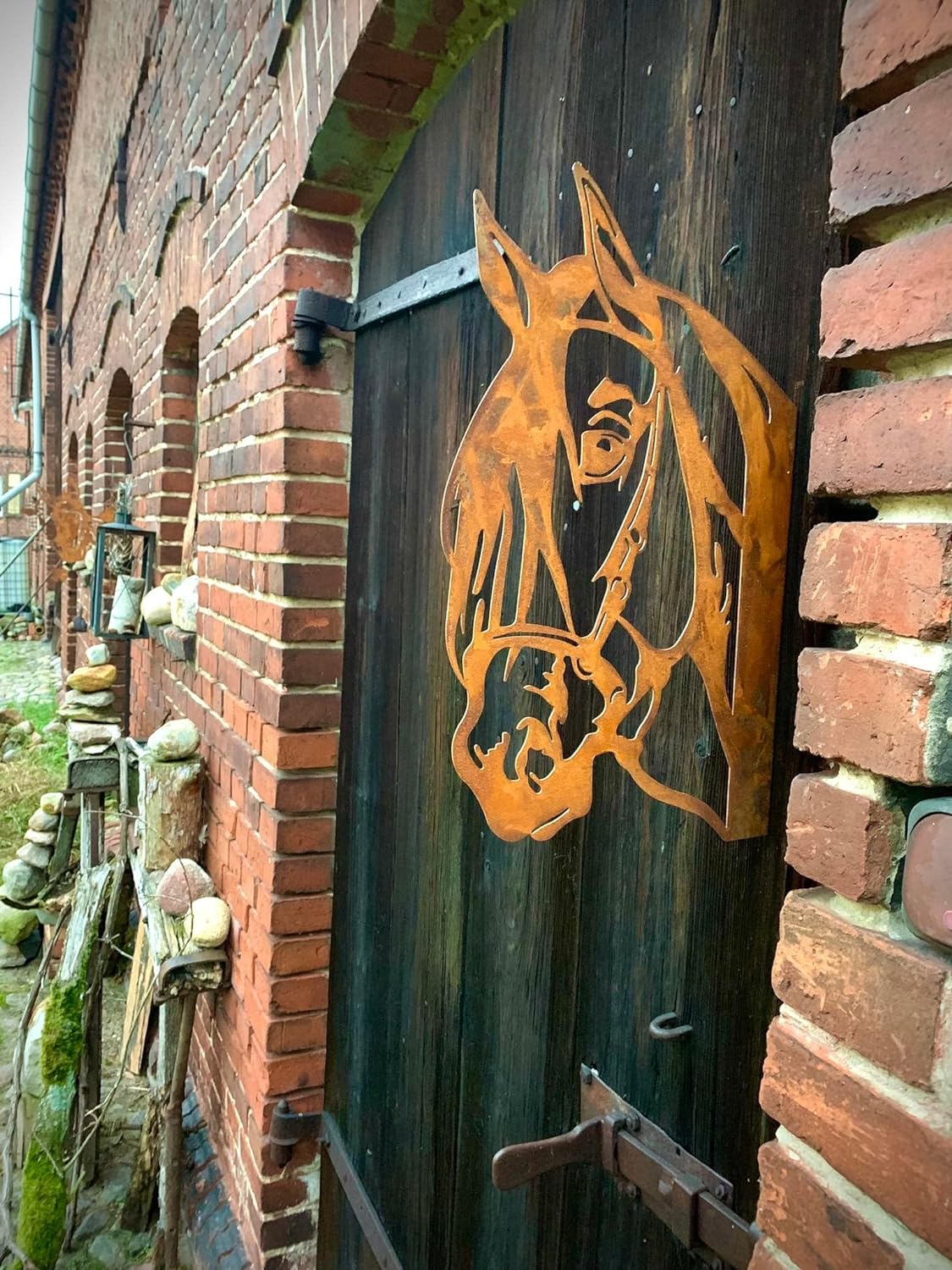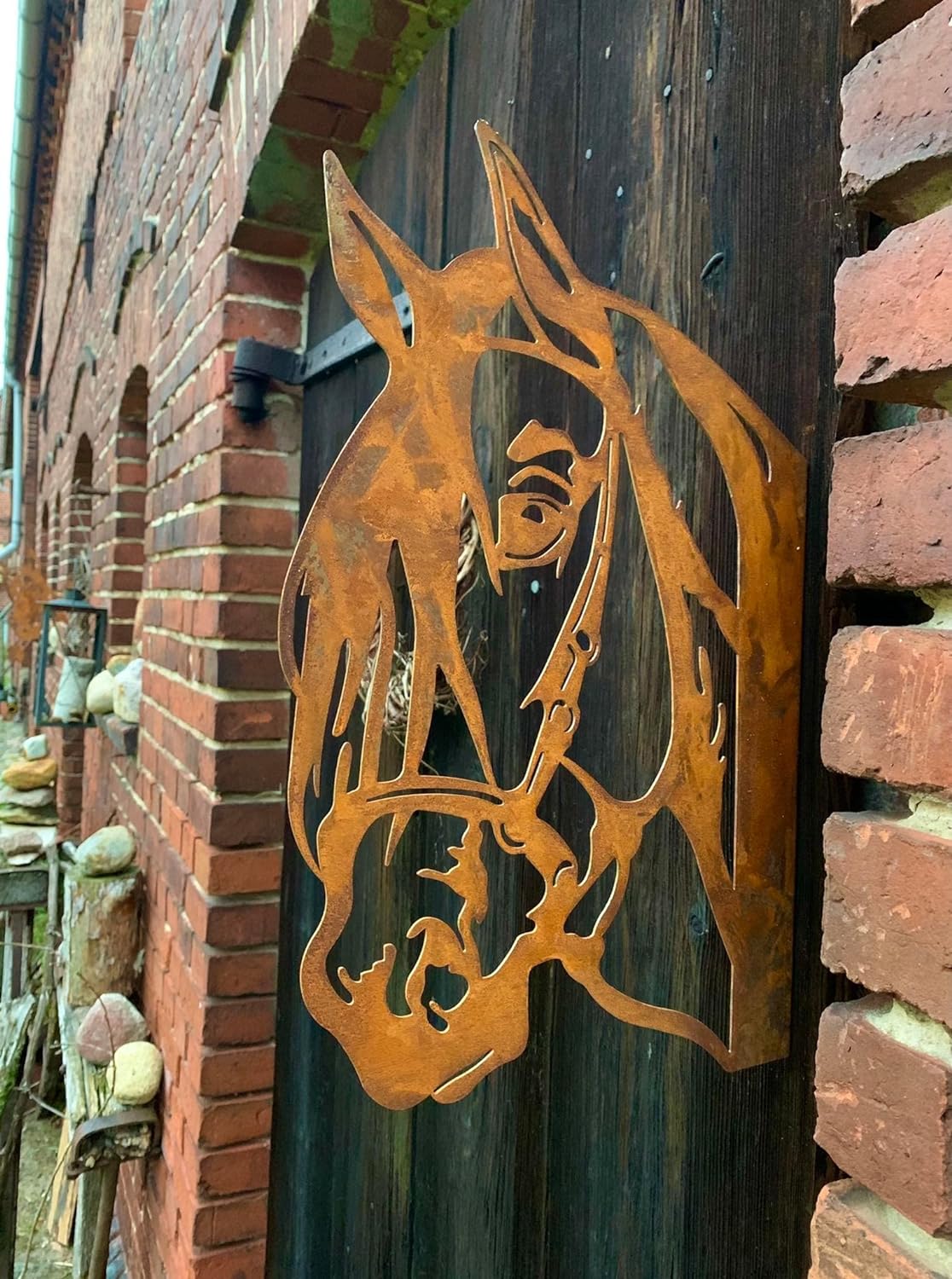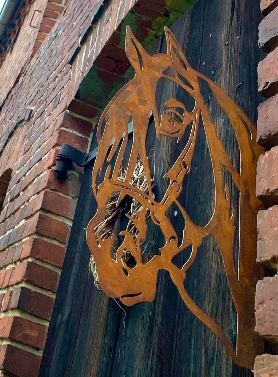 Bornhöft Baumstecker Metall Rost rostige Gartendeko Edelrost Kuh Kuhkopf Wanddekoration zum anschrau
