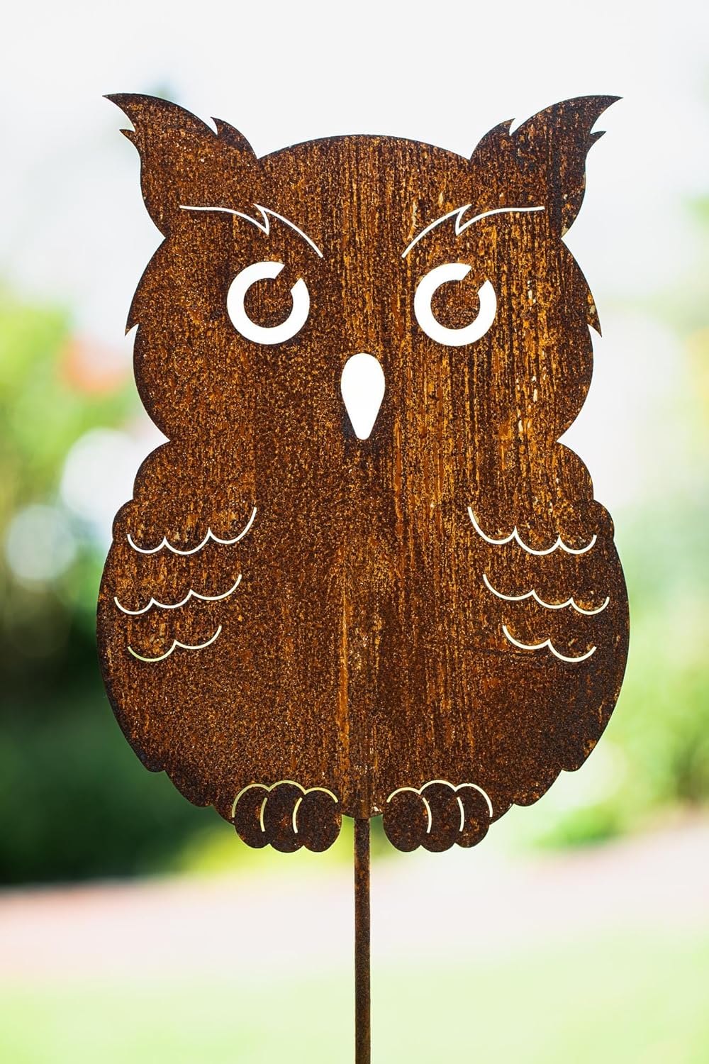 Bornhöft Gartenstecker Eule Kautz Metall Rost Gartendeko Edelrost rostige Deko für den Garten (Set 1