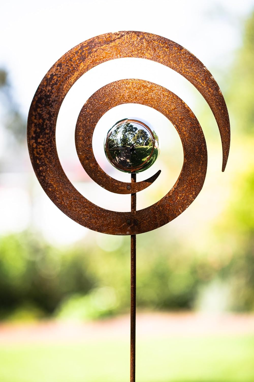 • Rostfigur für den Garten Pflanzstecker rostige Blume mit Edelstahlkugel als Geschenk Metallstecker Beetstecker Gartenfigur