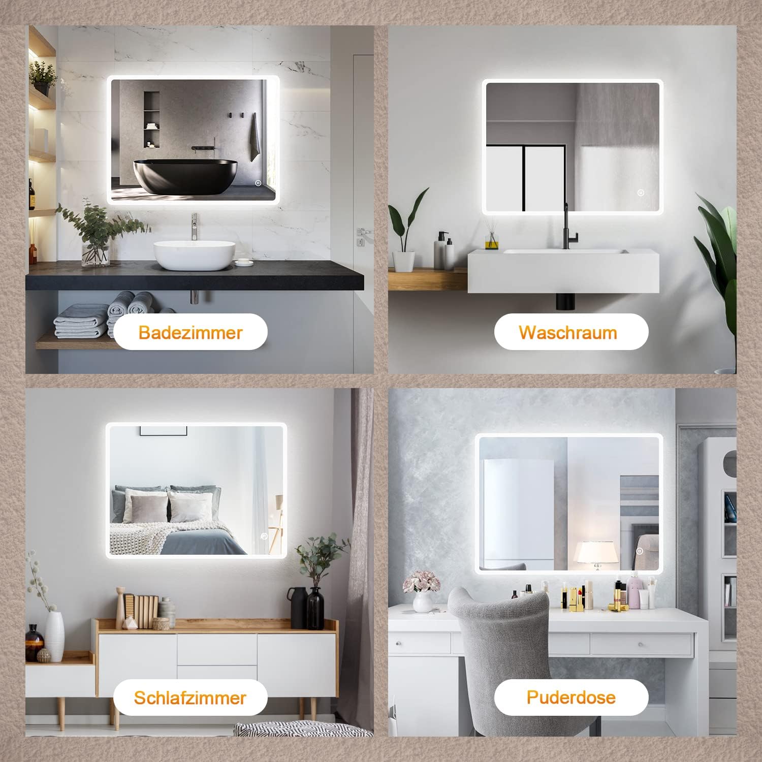 Boromal LED Badspiegel 40x60cm Badezimmerspiegel mit Beleuchtung 3 Lichtfarbe Dimmbar 3000-6500K 194