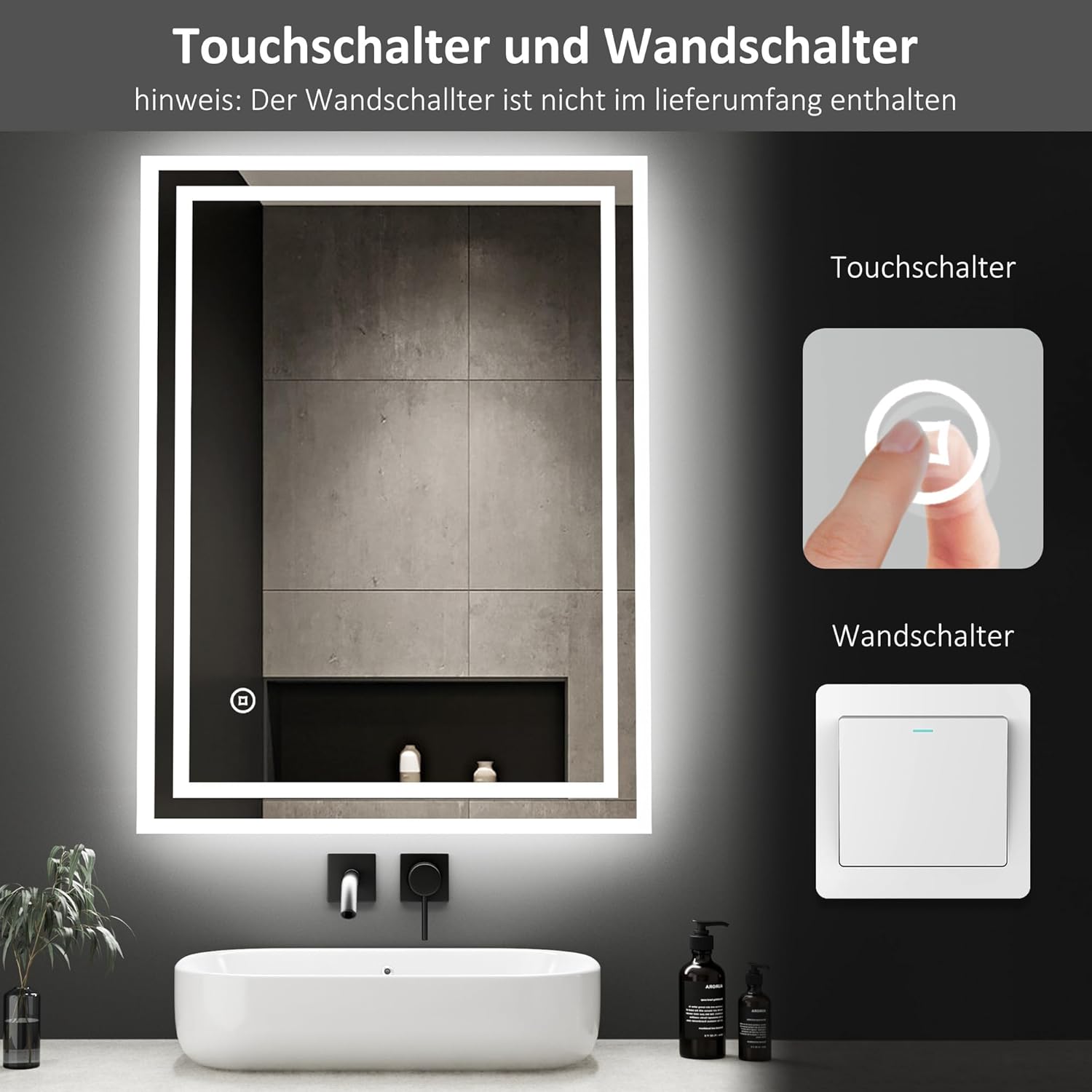 Boromal LED Badspiegel mit Beleuchtung 50x70cm Badezimmerspiegel 3 Lichtfarbe Dimmbar 3000-6500K 241