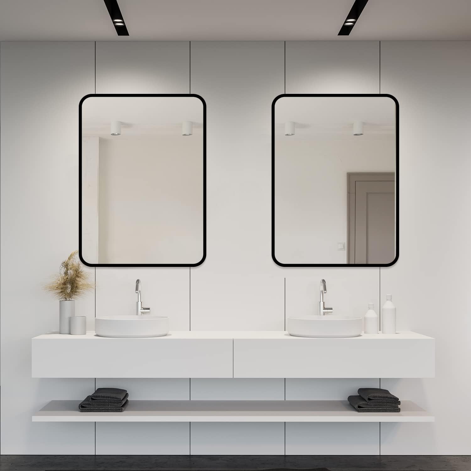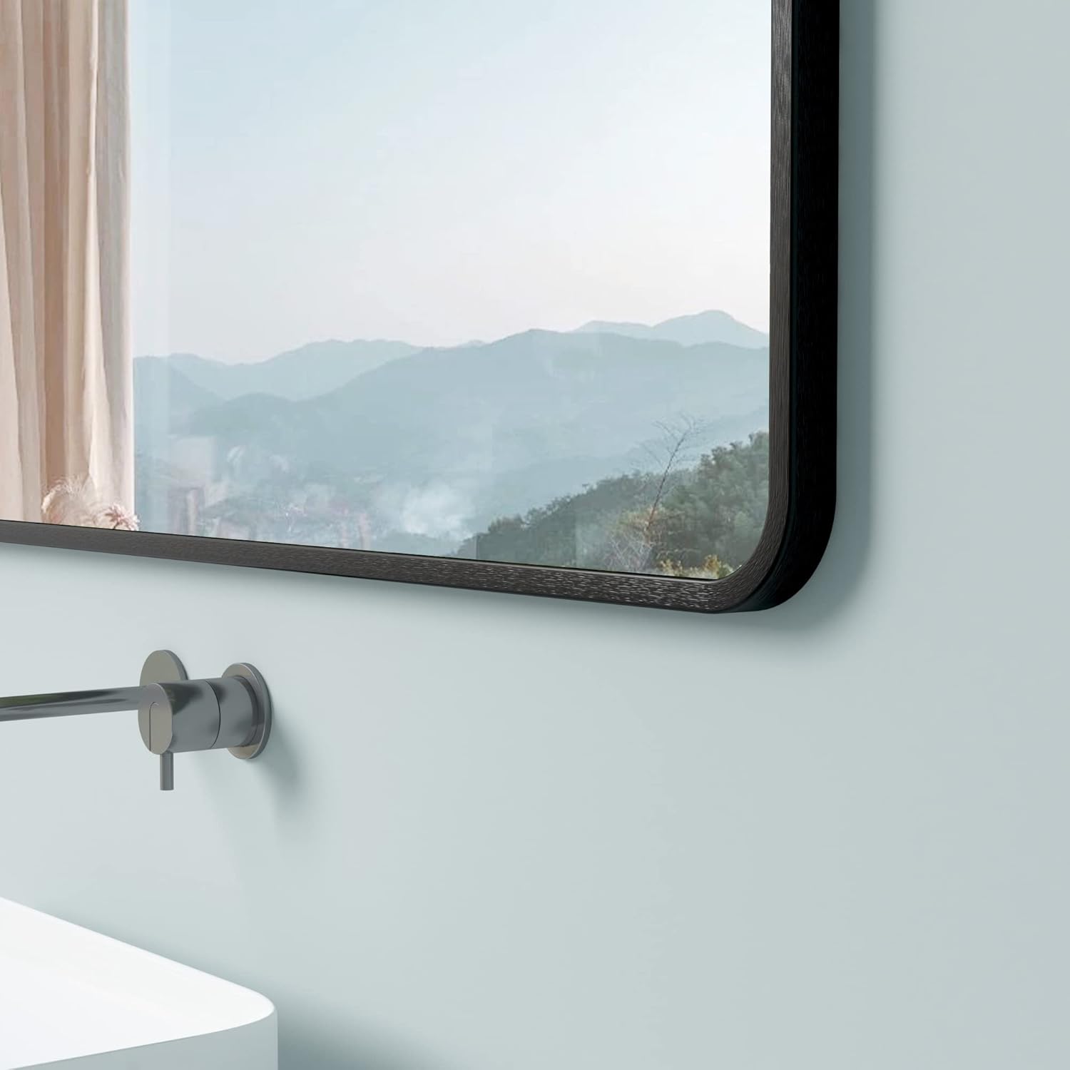 - Hochwertiger matt schwarzer Aluminiumrahmen. 5MM umweltfreundlicher kupferfreier Spiegel. Im eingebauten Zustand ist er nur 20mm von der Wand entfernt.