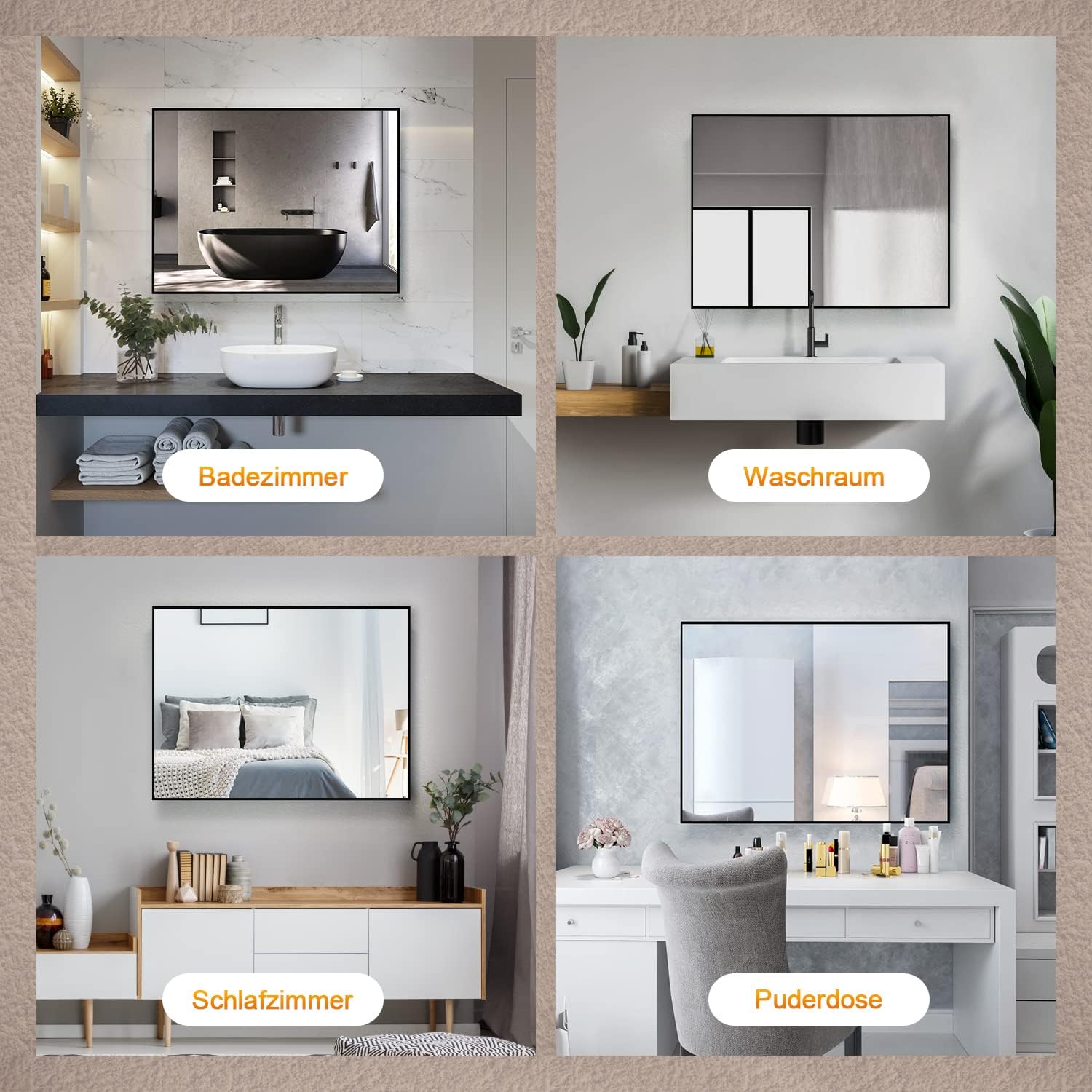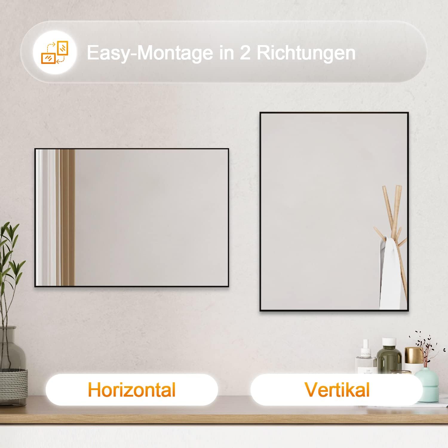 • Vertikal/Horizontal Installation, Der spiegel in 2 rihtungen aufgehangt werden kann, 80 x 60 cm oder 60 x 80 cm.