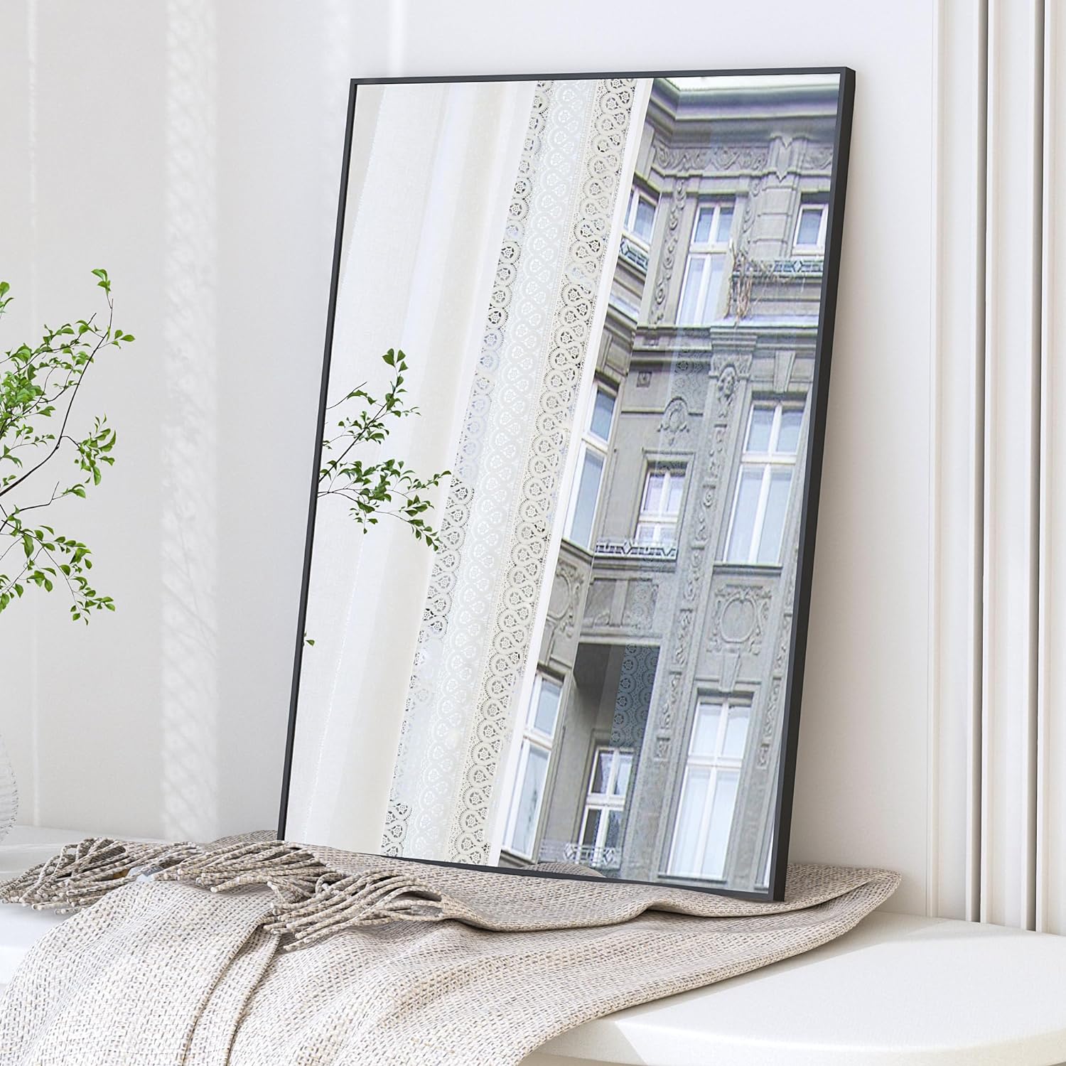 • schwarzer Spiegel mit minimalistischem Design, perfekte Grösse und trendig mit schmalem Rand, wirklich eine gute Wahl für Ihr neu dekoriertes Badezimmer, Garderobe, Flur, Untergeschoss, Duschraum, Scandi-Stil Wohnzimmer, Puderzimmer, über dem Kamin im Vorzimmer usw.