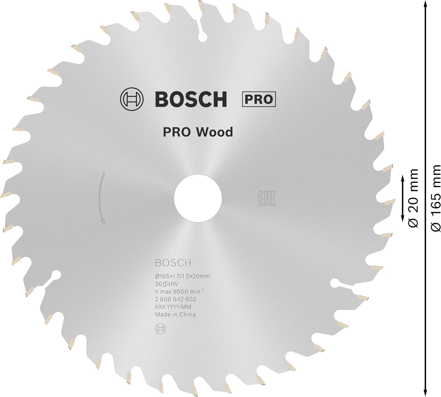 - Lieferumfang: PRO Wood Kreissägeblatt, 165 x 1.7 x 20 mm