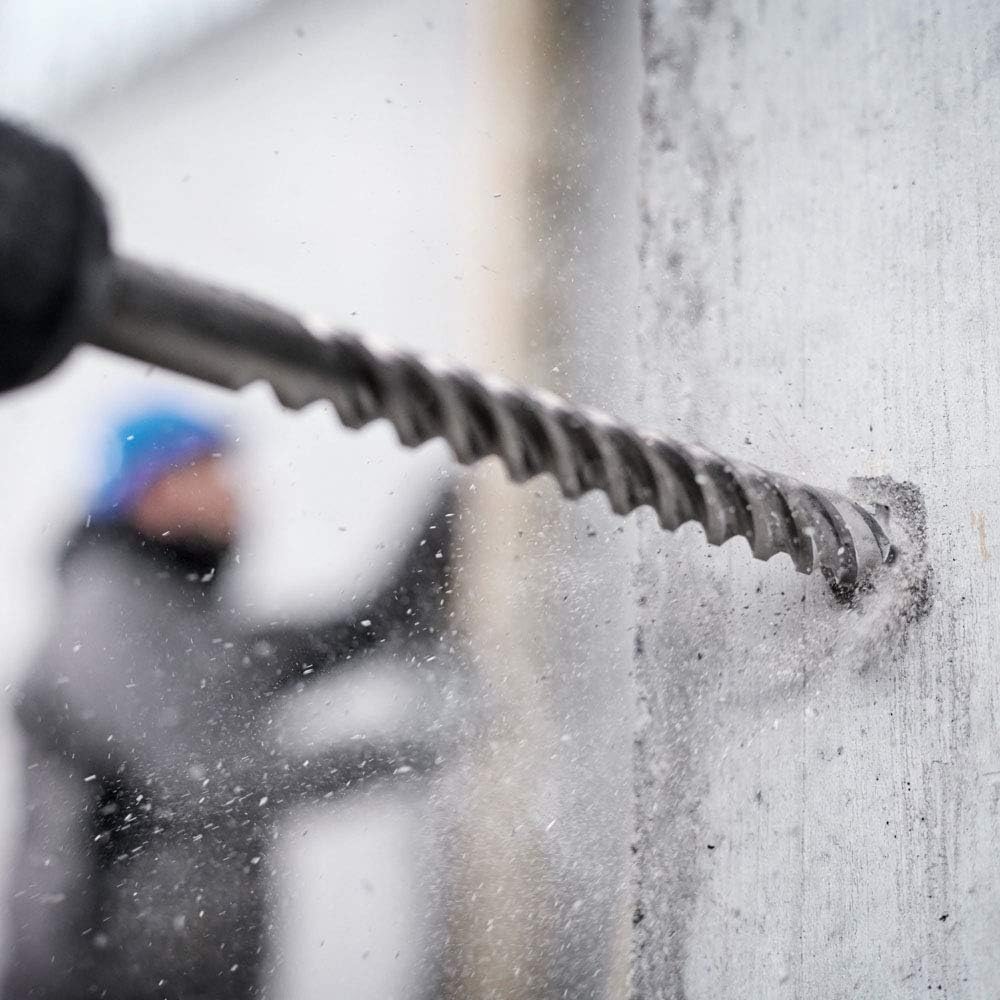 - Hohe Leistung und Standzeit bei Bohranwendungen in armierten Beton durch Vollhartmetallkopf mit 4 Schneiden