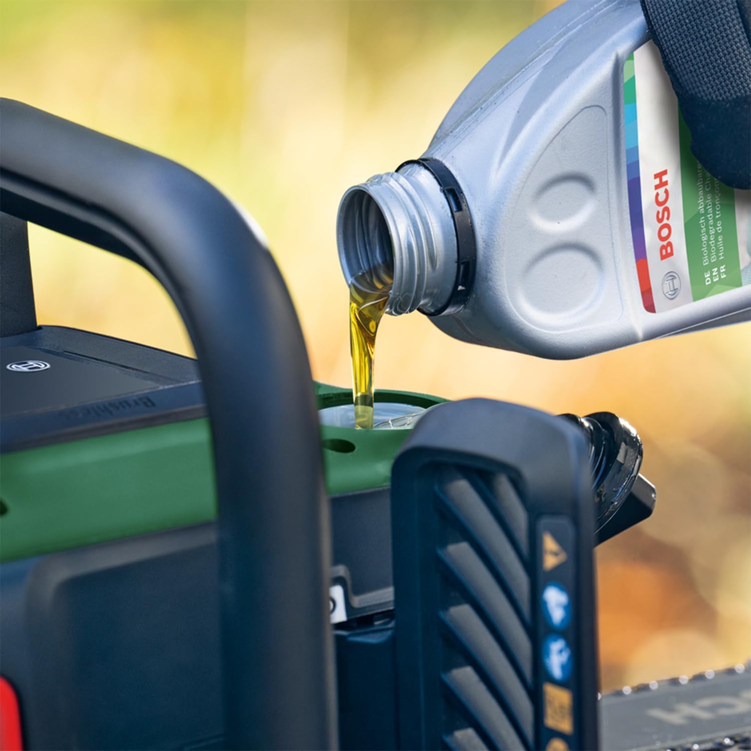 - 36 V kabellose Freiheit mit Bosch 36 V Power for all Battery System. Schneller, leichter und werkzeugloser Montage der Sägekette