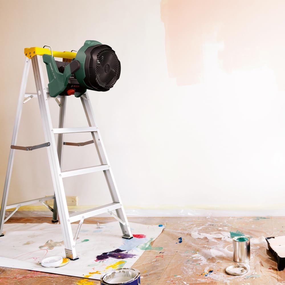 • Kompaktes und robustes Design: Der Akku-Ventilator wurde speziell für den Einsatz durch Heimwerker entwickelt, ist robust, leicht zu transportieren und nimmt wenig Platz in der Lagerung ein