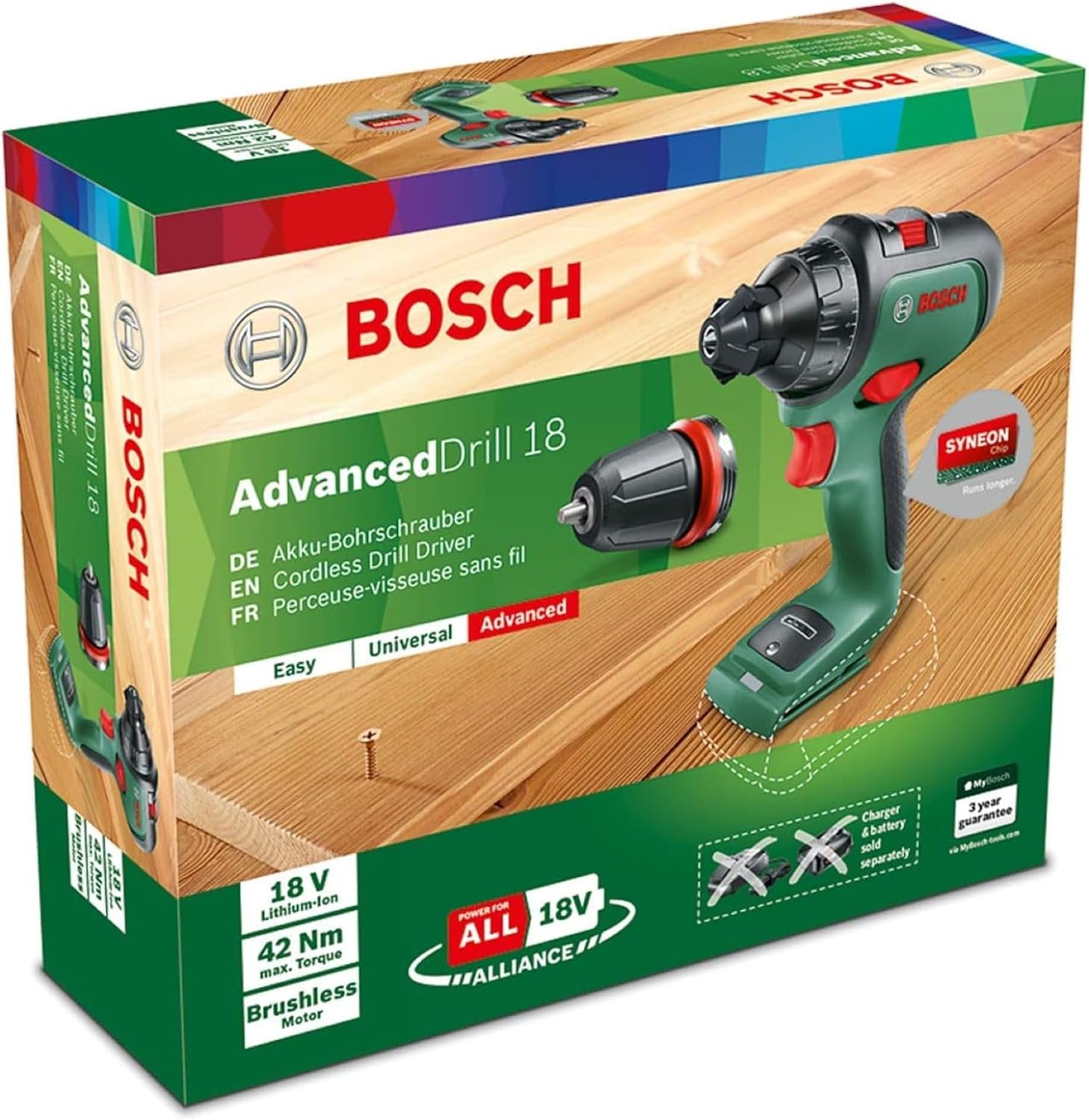 - Lieferumfang: AdvancedDrill 18, Aufnahmeschaft für Bohrfutter, Schrauberbit, Karton