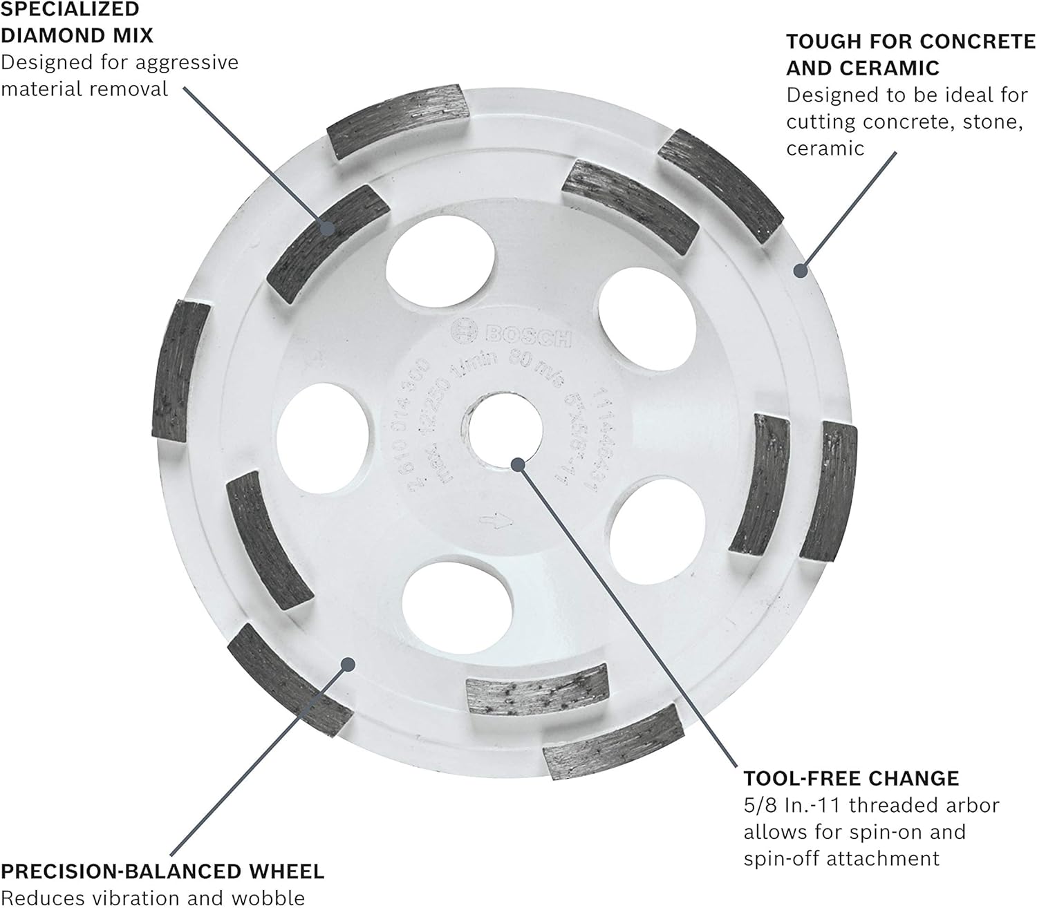 - Zweireihige segmentierte Becher-Ausführung - ideal für den schnellen Materialabtrag im Betonschliff