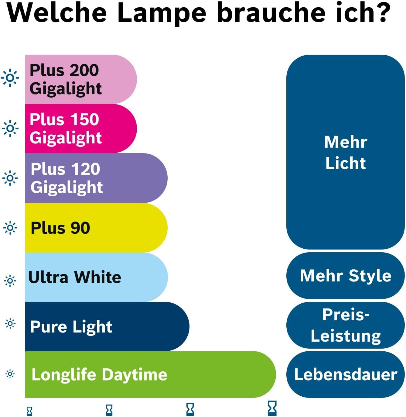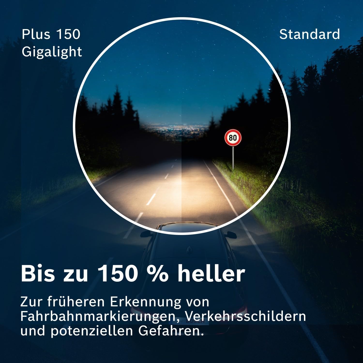 - Verlässlich: Die H4 Plus 150 Gigalight bietet einen breiten Lichtkegel und ermöglicht so eine sicherere Fahrt - sowohl in der Dämmerung als auch in dunklen Nächten