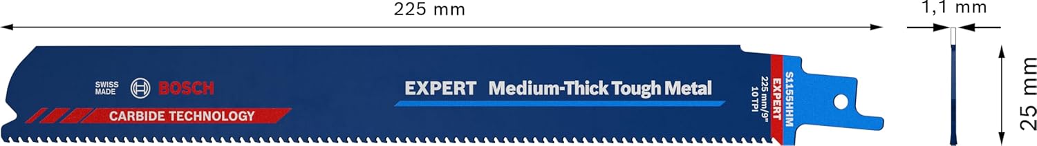 - Lieferumfang: Bosch Expert ‘Medium-Thick Tough Metal’ S 1155 HHM Säbelsägeblatt, 10 Stück