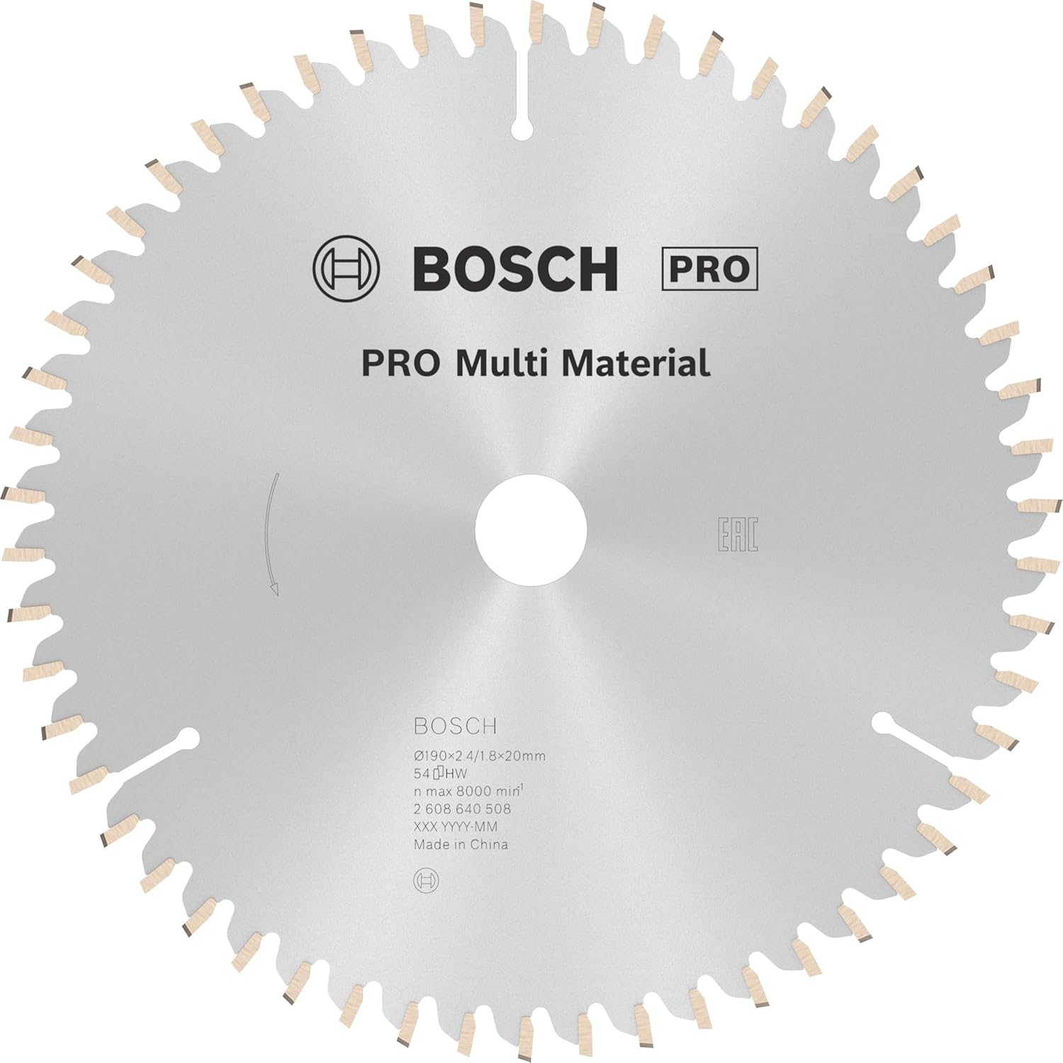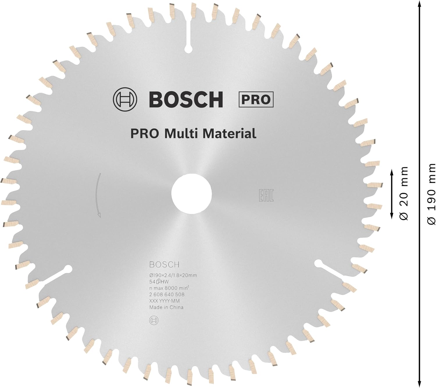 - Aussendurchmesser: 190 mm, Bohrung (ohne/mit Reduzierring): 20/16 mm, Schnittbreite: 2,4 mm, Stammblattstärke: 1,8 mm, Zähnezahl: 54