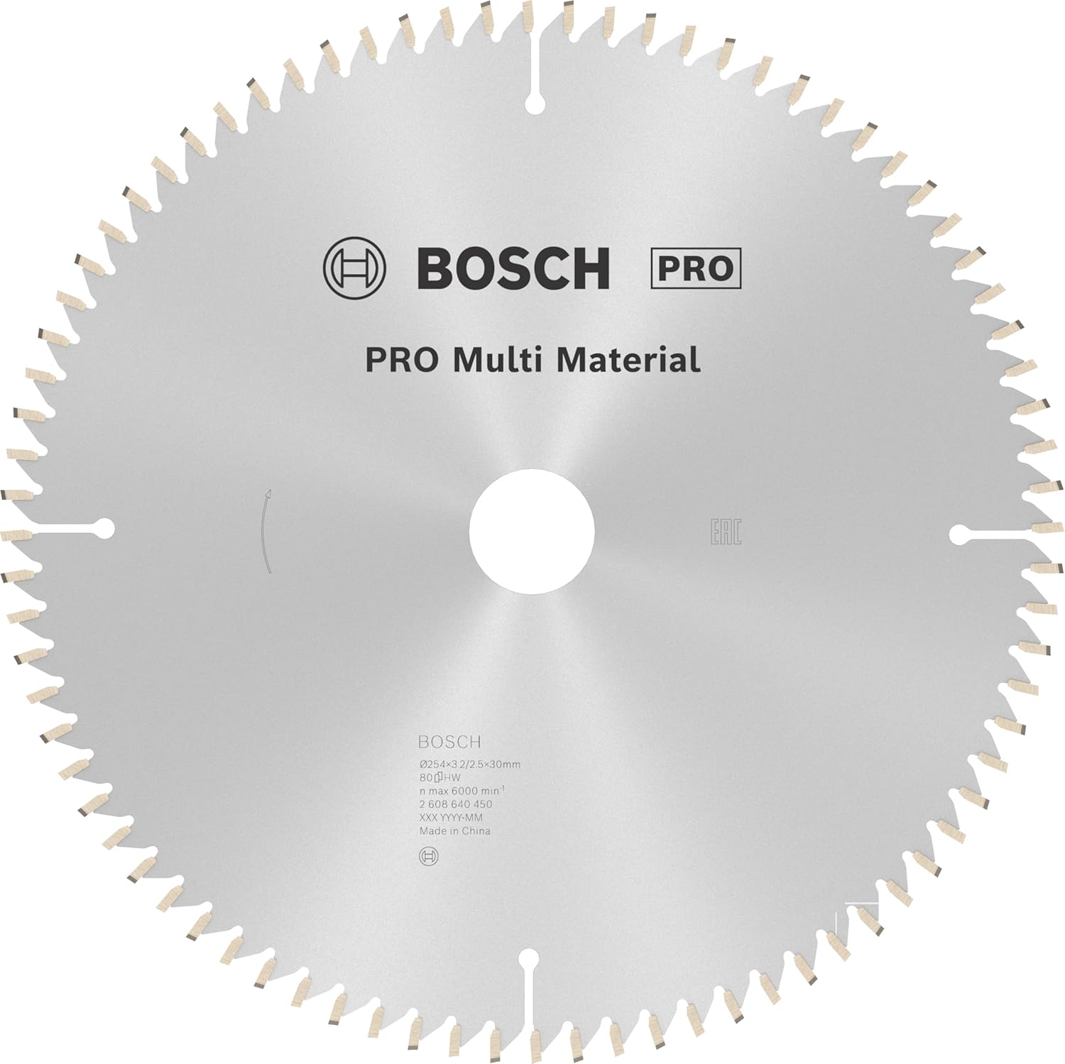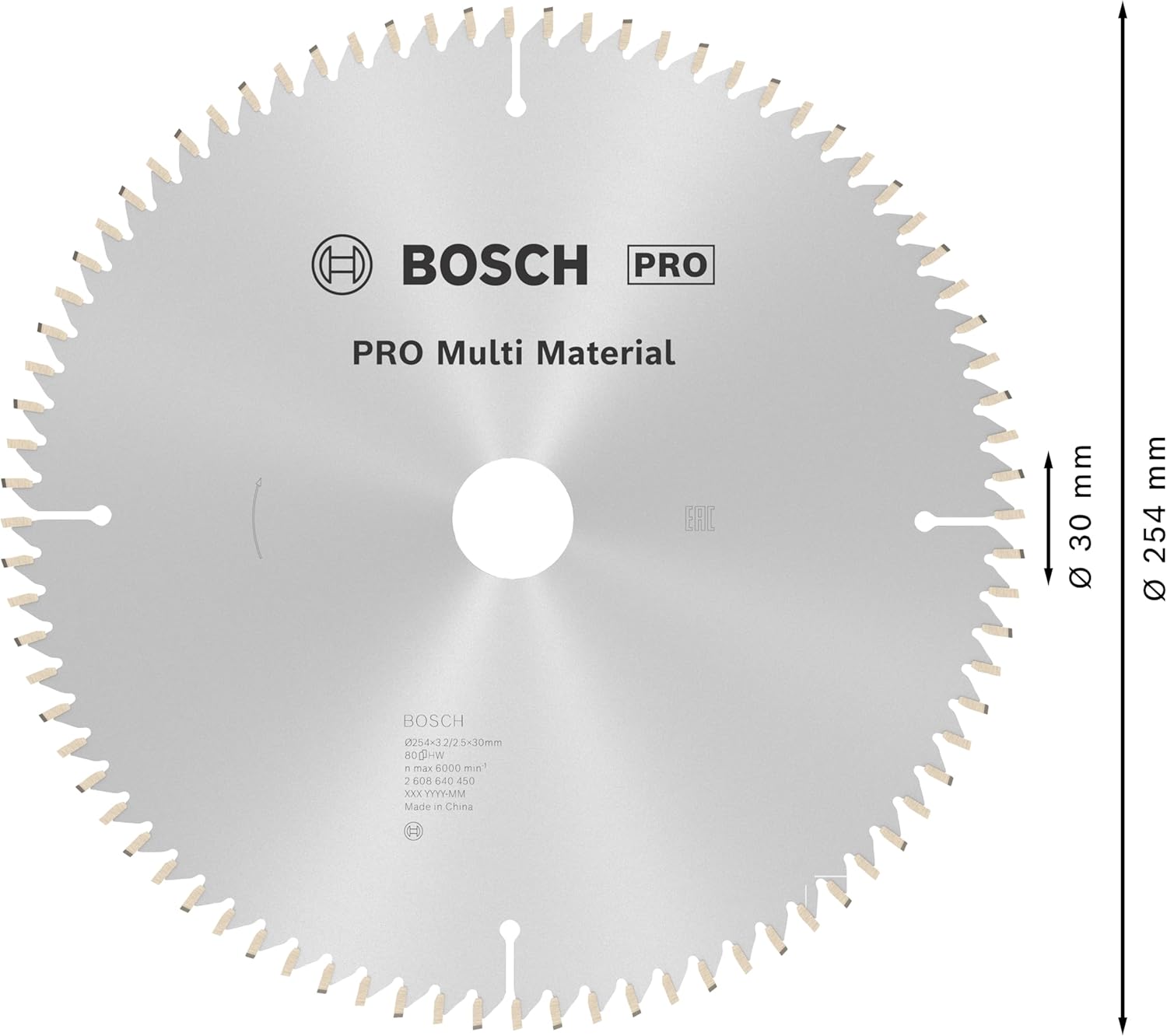 - Aussendurchmesser: 254 mm, Bohrung: 30 mm, Schnittbreite: 3,2 mm, Schnittstärke: 2,5 mm, Zähnezahl: 80 mm