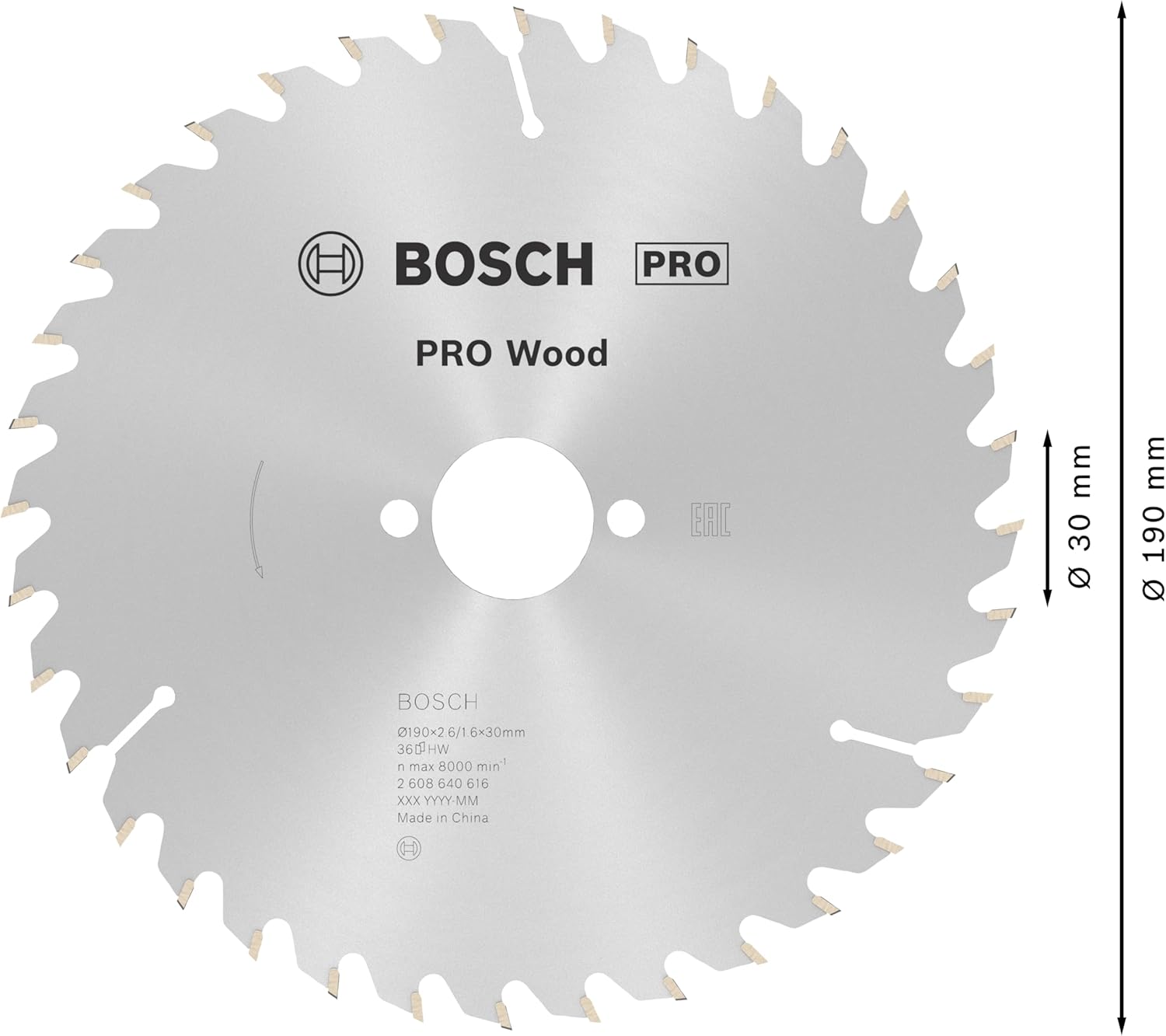 - Aussendurchmesser: 190 mm, Bohrung (ohne Reduzierring): 30 mm, Schnittbreite: 2,6 mm, Stammblattstärke: 1,6 mm, Zähnezahl: 36