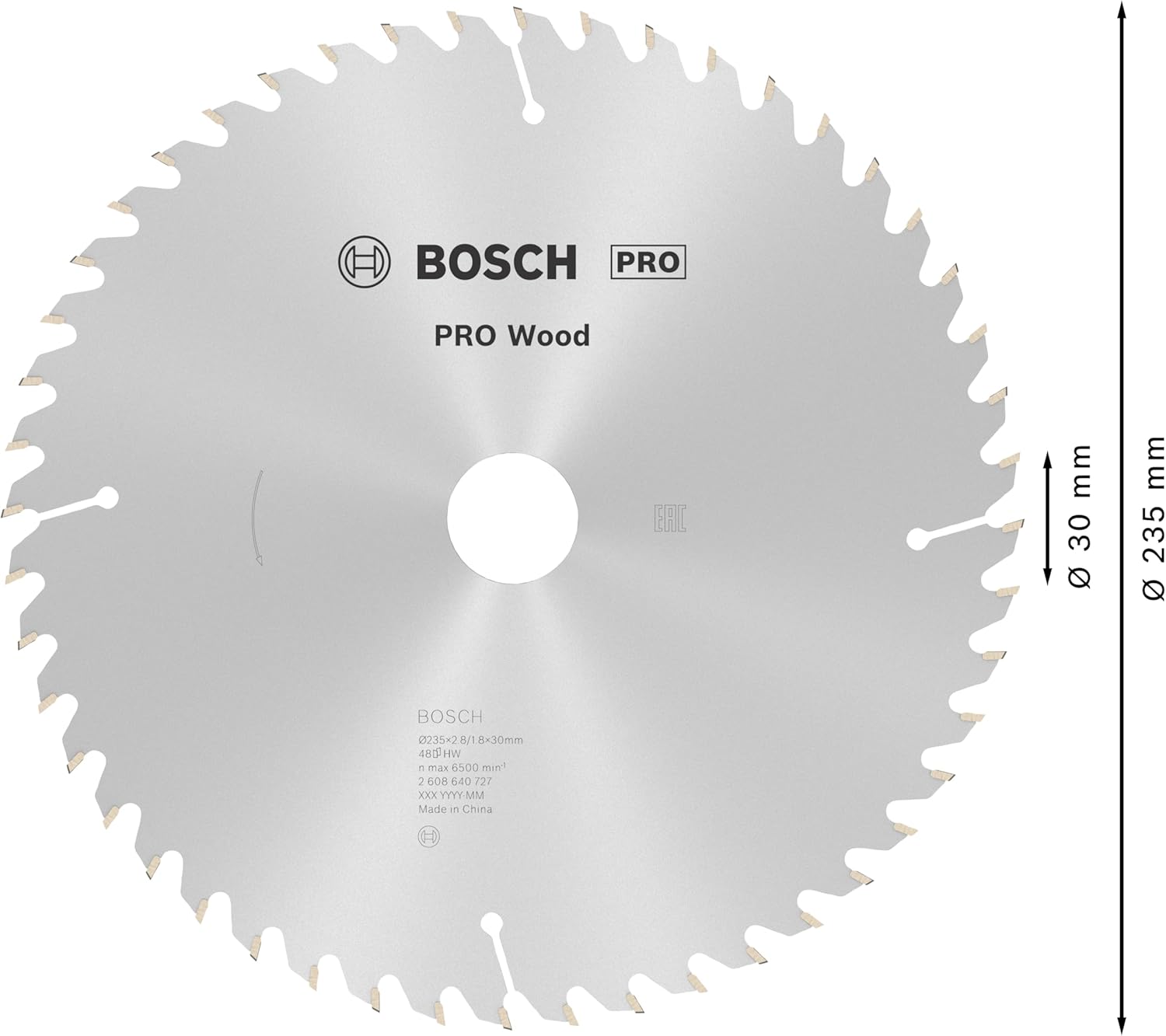 • Aussendurchmesser: 235 mm, Bohrung (mit/ohne Reduzierring): 25/60 mm, Schnittbreite: 2,8 mm, Stammblattstärke: 1,8 mm, Zähnezahl: 48