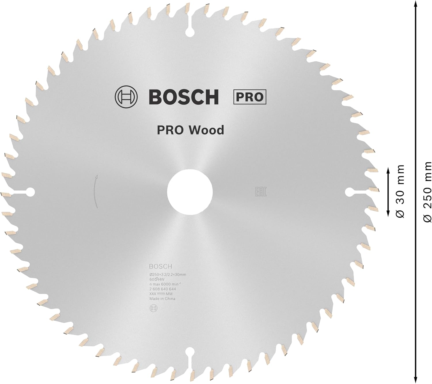 Bosch Professional 1x Kreissägeblatt Optiline Wood (Sägeblatt für Holz, Ø 250 x 30 x 3,2 mm, 60 Zähn