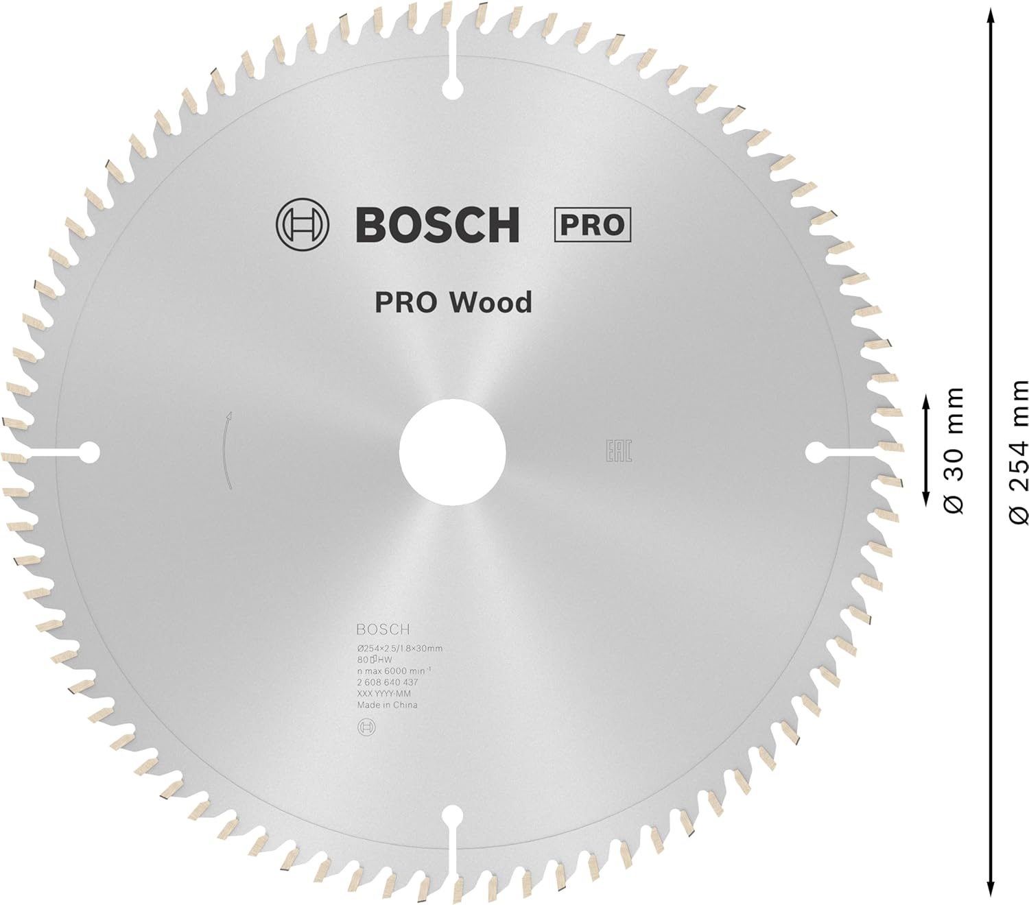 - Blattdurchmesser: 254 mm; Bohrung: 30 mm; Schnittbreite; 2,5 mm; Zähnezahl: 80