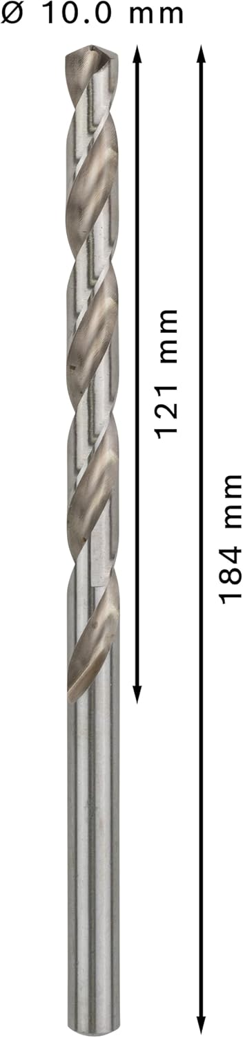 - Durchmesser x Arbeitslänge x Gesamtlänge: 10 x 121 x 184 mm, nach DIN 340
