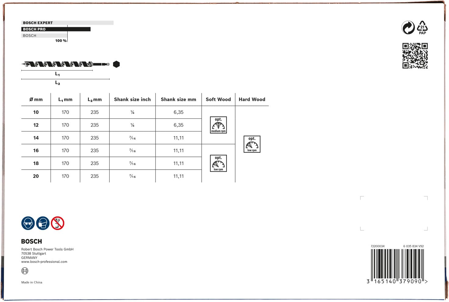 Bosch Professional 6tlg. Holzschlangenbohrer-Set mit 1/4"-Sechskantschaft Schaft-Set, Schaft-Set